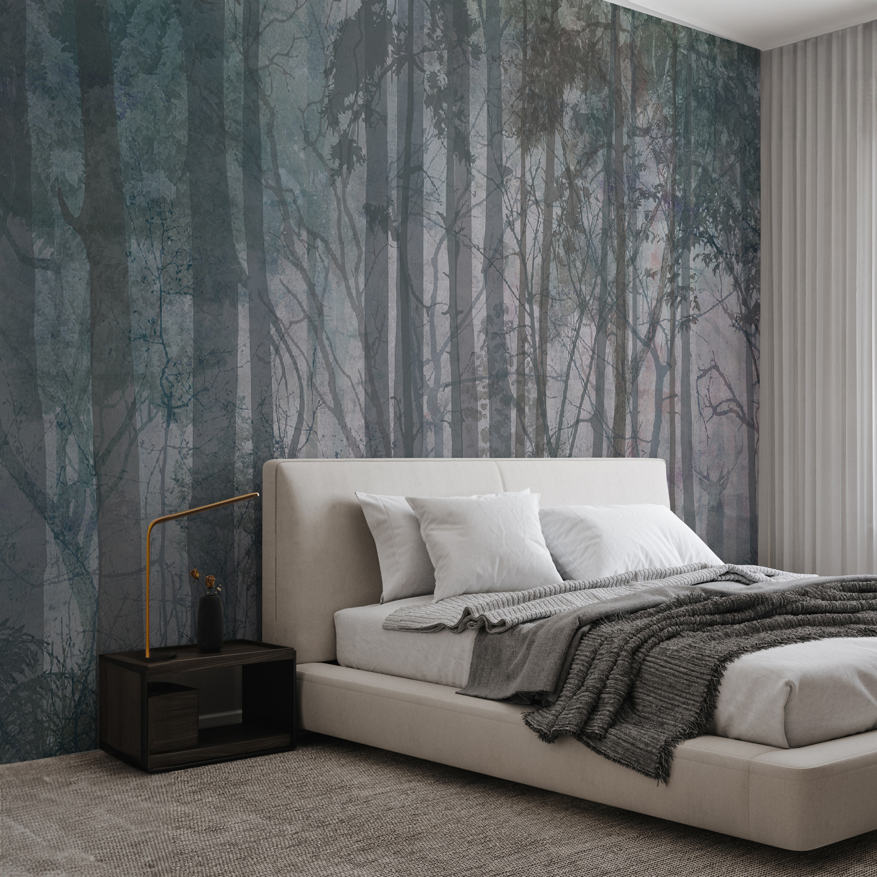 Predstavte si to: Mali ste hektický deň, ale potom ste sa pozreli na túto nástennú maľbu a zrazu ste sa ocitli v tomto pokojnom lese. Je to malý únik bez toho, aby ste museli opustiť svoj domov. Či už je to vaša obývacia izba, spálňa, alebo dokonca útulný čitateľský kútik, táto nástenná maľba premení akýkoľvek priestor na pokojné útočisko.