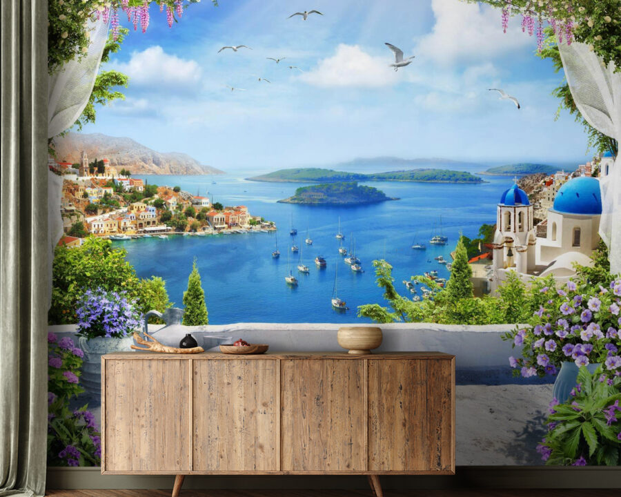 “Nástenné maľby Egejský raj pod jasnou oblohou” sú len malým kúskom neba pre vašu stenu! Predstavte si, že sa každé ráno prebúdzate s pohľadom na túto úchvatnú morskú krajinu Egejského mora s očarujúcou pobrežnou architektúrou a živými, rozkvitnutými kvetmi. Je to ako otvoriť okno do sveta, kde je obloha vždy modrá a more je posiate plachetnicami, ktoré lenivo plávajú okolo – úplná dokonalosť, však?