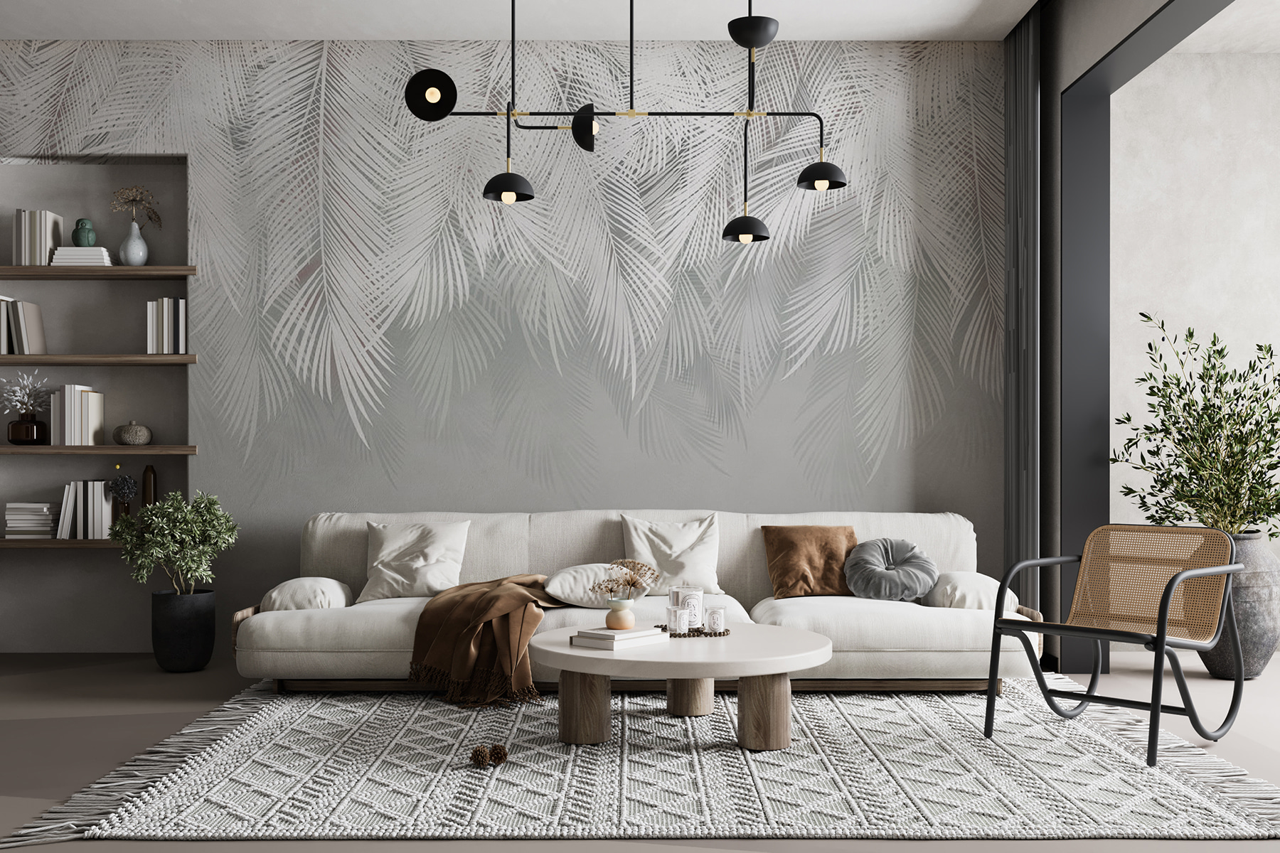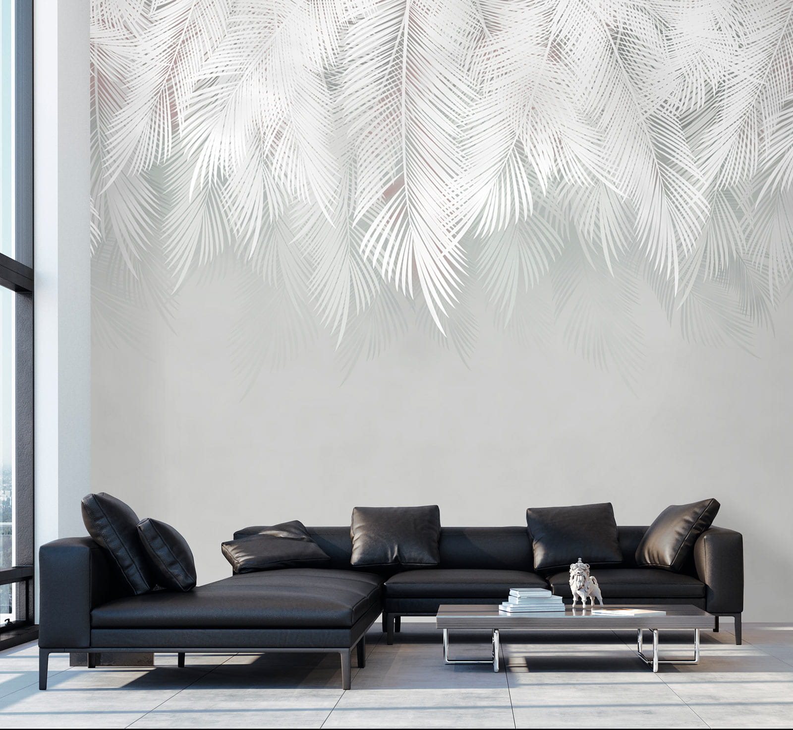 Premeňte svoj priestor pomocou tejto úžasnej nástennej maľby bielych listov tancujúcich na chladnom sivom pozadí. Pôsobí ako jemný vánok počas slnečného dňa a ponúka pokojnú atmosféru, ktorá pozýva do každej miestnosti. Predstavte si, ako sa krútite s knihou alebo sa rozprávate s priateľmi, zatiaľ čo listy vytvárajú rozmarnú atmosféru. Jemné odtiene sa bez problémov kombinujú so všetkými druhmi dekorácií, takže ich ľahko zladíte s obľúbeným nábytkom. Kto by sa neusmieval na stenu, ktorá pôsobí ako závan čerstvého vzduchu? Táto nástenná maľba, ktorá je ideálna do tých útulných kútov alebo na oživenie inak nudnej steny, je nádherným spôsobom, ako osviežiť váš domov.