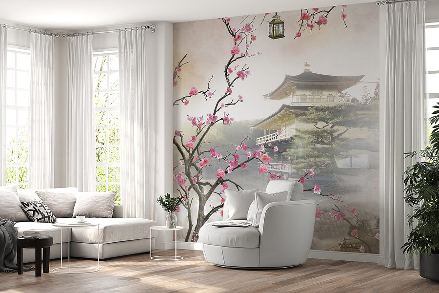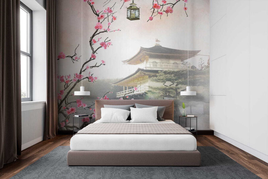 Predstavte si to: mali ste dlhý deň, padnete na gauč a tam je táto úžasná nástenná maľba “Kvety rámujúce pokojný japonský chrám”. Budete mať pocit, že ste utiekli do pokojnej záhrady na druhom konci sveta. Jemné čerešňové kvety sa ligocú a rámujú tichý chrám, z ktorého priam srší pokoj. A tie jemné farby? Čisté kúzlo. Ideálne pre každého, kto miluje japonskú kultúru alebo chce len pridať do svojho priestoru štipku zenu.