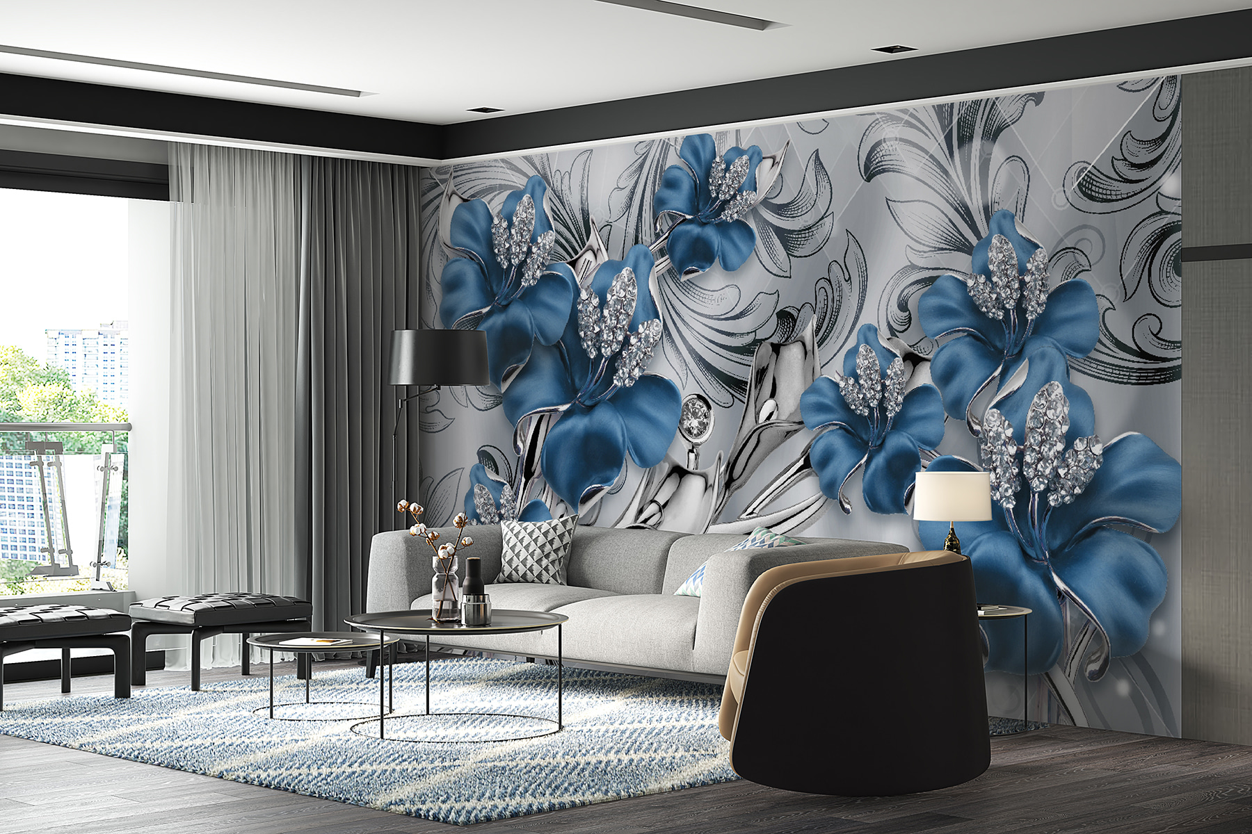 2 recenzie k Fototapety Zdobené modré kvety s kryštálmi