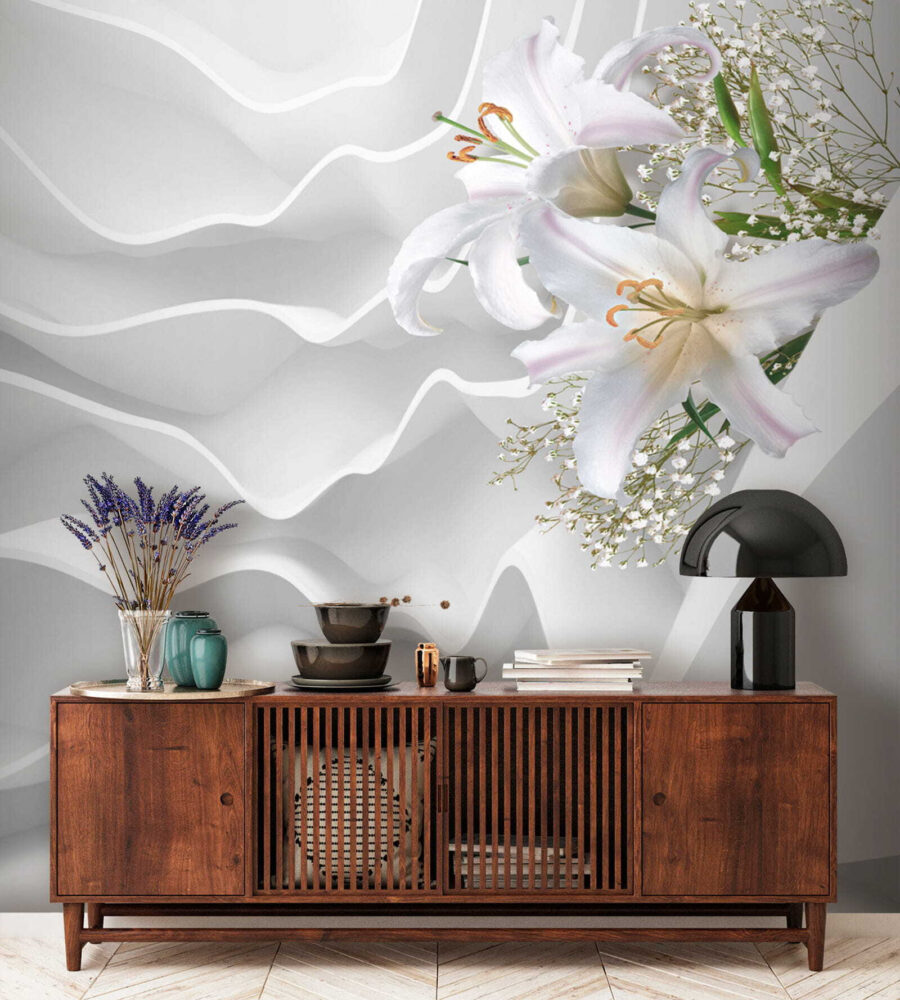 “Nástenné maľby Lilie na pozadí vlnitého bieleho vzoru” sú takou snovou voľbou pre každého, kto chce oživiť priestor nádychom elegancie a jemnosti! Predstavte si, že sa každý deň prebúdzate s týmito jemnými ľaliami, pôvabne zasadenými na zvlnenom bielom pozadí – je to ako jemný vánok krásy vo vašej izbe. 3D efekt dodáva tento wow faktor, ktorý vytvára ilúziu hĺbky a pohybu. Perfektne sa hodí do spálne alebo do útulného kútika, kde popíjate rannú kávu. Prináša pocit pokoja a sviežosti, takmer akoby ste si do interiéru priniesli kúsok pokojnej záhrady. Navyše je dostatočne univerzálny, aby sa hodil do rôznych štýlov interiéru. Krásny spôsob, ako dosiahnuť, aby vaše steny hovorili štýlom!