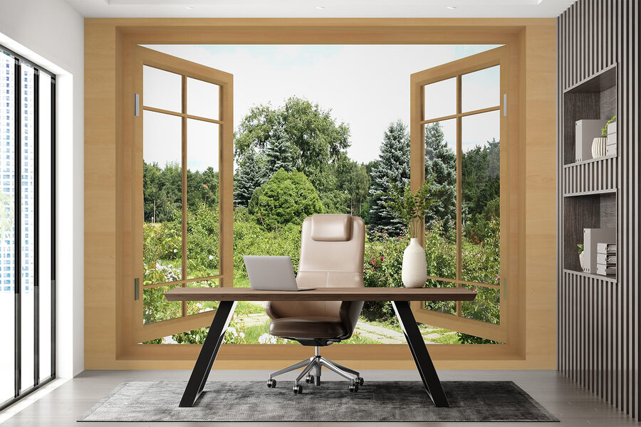 Predstavte si, že sa každý deň zobudíte do sviežej záhrady, ktorá oplýva nadčasovou krásou, bez toho, aby ste museli zalievať čo i len jednu rastlinu! Táto fototapeta “Pohľad na sviežu záhradu cez okno” vnesie pokojné čaro prírody priamo do vašej izby. Je to ako mať tajnú záhradu, do ktorej môžete utiecť vždy, keď sa vám steny začnú zdať príliš fádne. Či už žijete v rušnom meste alebo na pokojnom predmestí, táto fototapeta vám poskytne okamžité pokojné útočisko. Predstavte si ten pokoj – slnečné svetlo prenikajúce cez listy, žiarivú zeleň, možno aj občasné zachytenie vtáka. Vďaka nemu by sa vaša obývacia izba, spálňa alebo dokonca kancelária mohla cítiť ako útulné útočisko. Navyše je ideálny pre tých, ktorí nemajú príliš zelený palec (žmurk-žmurk), pretože je bezúdržbový. Len si predstavte posedenie so šálkou čaju, dobrou knihou a tým výhľadom! Úžasné, však?