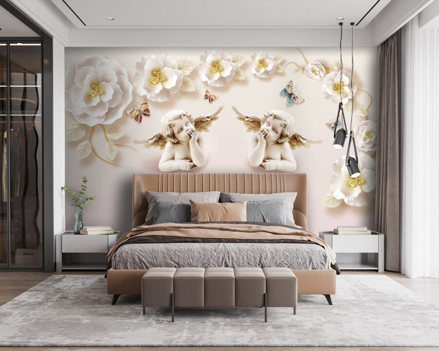 Predstavte si to na stene – dvojicu roztomilých anjelikov s krídlami, obklopených zasneženými nadrozmernými kvetmi a jemne poletujúcimi motýľmi. Je to ako vstúpiť do rozprávkovej záhrady vždy, keď vstúpite do miestnosti. Táto nástenná maľba nie je len dekoráciou – je to celá nálada. Predstavte si, že prídete domov po dlhom dni a privíta vás táto pokojná scéna, ktorá vám okamžite zdvihne náladu. Ideálna pre každého, kto miluje nádych rozmarnosti s prímesou elegancie. Navyše je to úžasný podnet na rozhovor – hostia sa neprestávajú rozplývať nad vaším umeleckým vkusom. Tu sa stretáva architektúra s rozprávkovým šarmom – ideálne pre tých, ktorí túžia po troche kúzla v každodennom živote.