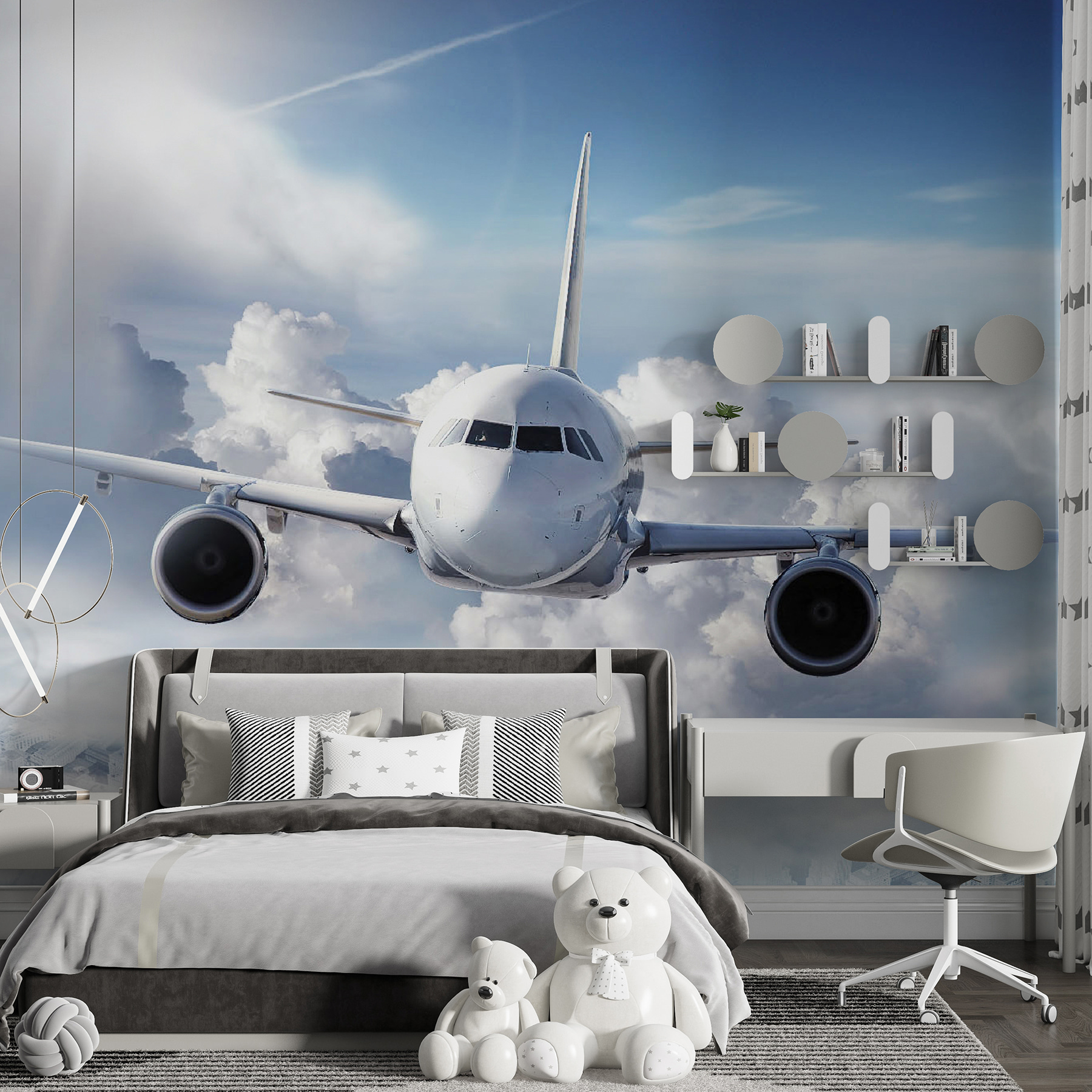 Vydajte sa na výlet nad oblaky bez toho, aby ste museli opustiť miestnosť! Táto nástenná maľba s pokojným lietadlom plávajúcim medzi nadýchanými mrakmi je ideálna na vyvolanie pocitu dobrodružstva. Okamžite premení akýkoľvek priestor na zasnený únik, v ktorom sa predstavivosť môže vznášať. Predstavte si, ako sa detská izba stáva útulným kokpitom, ktorý inšpiruje sny o vzdialených miestach a nekonečnej oblohe. Vďaka jemným odtieňom a pokojnej atmosfére je to ako mať okno do divov sveta priamo na stene. Nechajte túto fototapetu pozdvihnúť dekor a vytvoriť hravú atmosféru – ideálnu pre začínajúcich objaviteľov aj ostrieľaných cestovateľov v srdci!