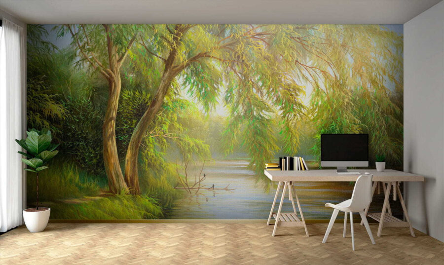 Premeňte svoj priestor pomocou nástennej maľby, vďaka ktorej budete mať pocit, že ste vstúpili priamo do prírody. Tento očarujúci dizajn zobrazuje pokojný strom zdobený sviežou zeleňou a teplými žltými listami, ktoré dokonale zachytávajú žiaru zlatej hodiny. Predstavte si, že ležíte vo svojej obývačke, popíjate čaj a táto nástenná maľba vám šepká príbehy o veľkej prírode. Je to ako mať mini les priamo na stene, ktorý prináša všetku tú osviežujúcu atmosféru bez akýchkoľvek chýb! Či už ide o útulný kútik alebo svetlú kanceláriu, tento kúsok nabáda k pokoju a inšpirácii. Len sa nečudujte, ak vo vás vyvolá chuť založiť si záhradu!