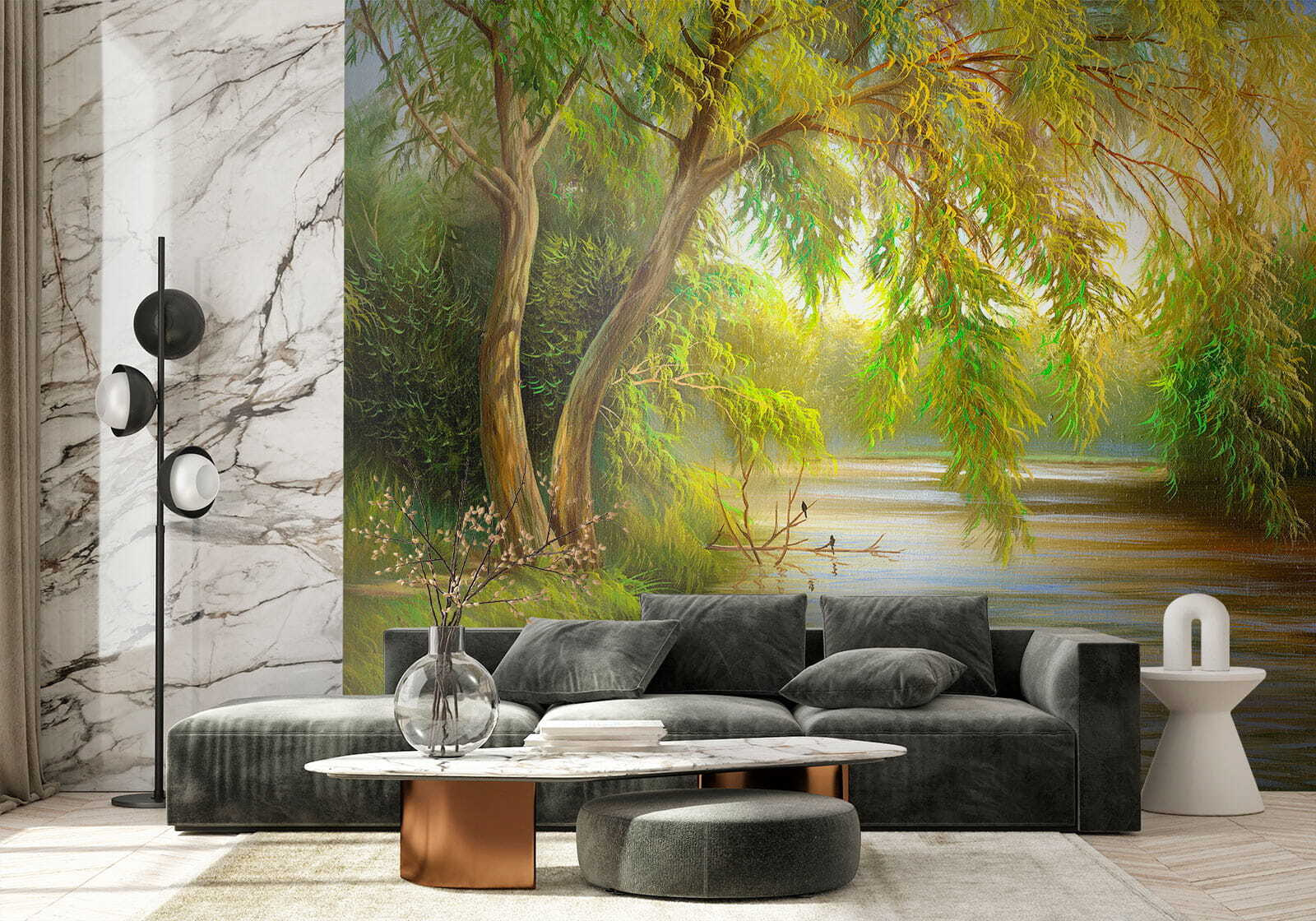 Premeňte svoj priestor pomocou nástennej maľby, vďaka ktorej budete mať pocit, že ste vstúpili priamo do prírody. Tento očarujúci dizajn zobrazuje pokojný strom zdobený sviežou zeleňou a teplými žltými listami, ktoré dokonale zachytávajú žiaru zlatej hodiny. Predstavte si, že ležíte vo svojej obývačke, popíjate čaj a táto nástenná maľba vám šepká príbehy o veľkej prírode. Je to ako mať mini les priamo na stene, ktorý prináša všetku tú osviežujúcu atmosféru bez akýchkoľvek chýb! Či už ide o útulný kútik alebo svetlú kanceláriu, tento kúsok nabáda k pokoju a inšpirácii. Len sa nečudujte, ak vo vás vyvolá chuť založiť si záhradu!