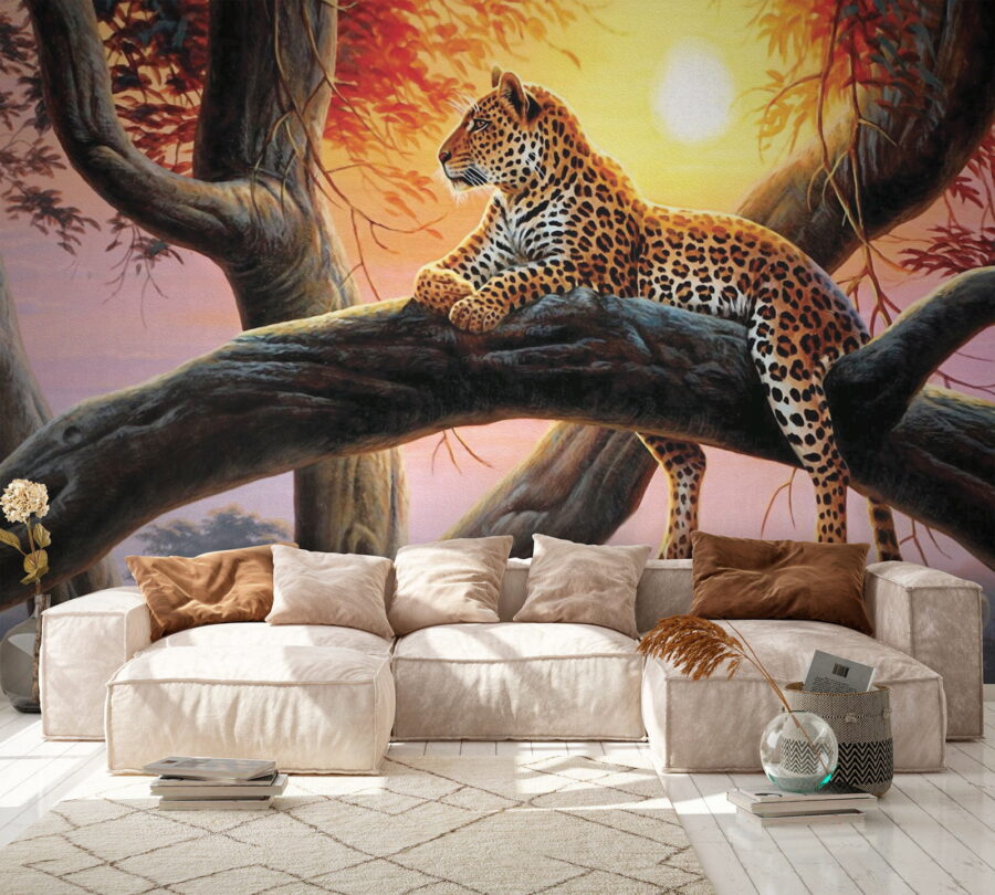 Chceli ste niekedy zažiť kúsok divočiny priamo vo svojej obývačke? Pozrite si túto skvelú nástennú maľbu “Leopard ležiaci na strome pri západe slnka”. Je na nej majestátny leopard, ktorý si len tak odpočíva na konári stromu, zaliaty teplou žiarou západu slnka. Tieto úžasné, sýte farby úplne premenia každý priestor. Predstavte si, že sa po dlhom dni vrátite domov – budete mať pocit, že ste sa zatúlali do exotickej savany! Je ideálny pre milovníkov zvierat alebo pre každého, kto túži po troche prírodnej drámy vo svojom interiéri. Atmosférický, pokojný a mierne divoký – konverzačný kúsok, ktorý je rovnako relaxačný ako nápadný.