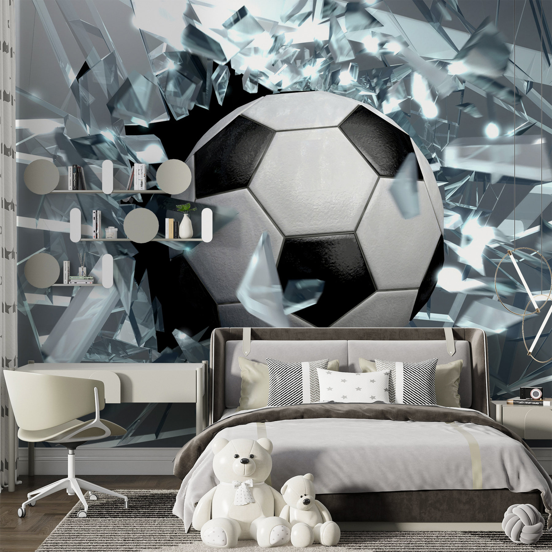 Táto nástenná maľba premení miestnosť na živé dobrodružstvo a prenesie vzrušujúcu energiu futbalu priamo na vašu stenu. Predstavte si silnú futbalovú loptu, ktorá preráža pomyselnú bariéru, úlomky skla iskria živú atmosféru. Je to, akoby váš priestor práve strelil najvyšší gól, takže je ideálny pre deti, ktoré snívajú o tom, že sa stanú superhviezdami na ihrisku. Len si to predstavte – prichádzajú k vám priatelia, oči sa rozširujú a otázky lietajú. Ktoré dieťa by sa pri tejto dynamickej scéne necítilo ako šampión? Je to viac než len dekorácia; je to inšpirácia, vzrušenie a kopec zábavy!