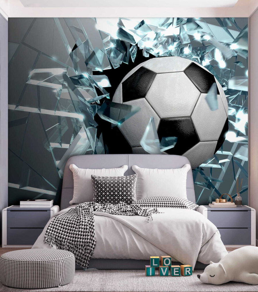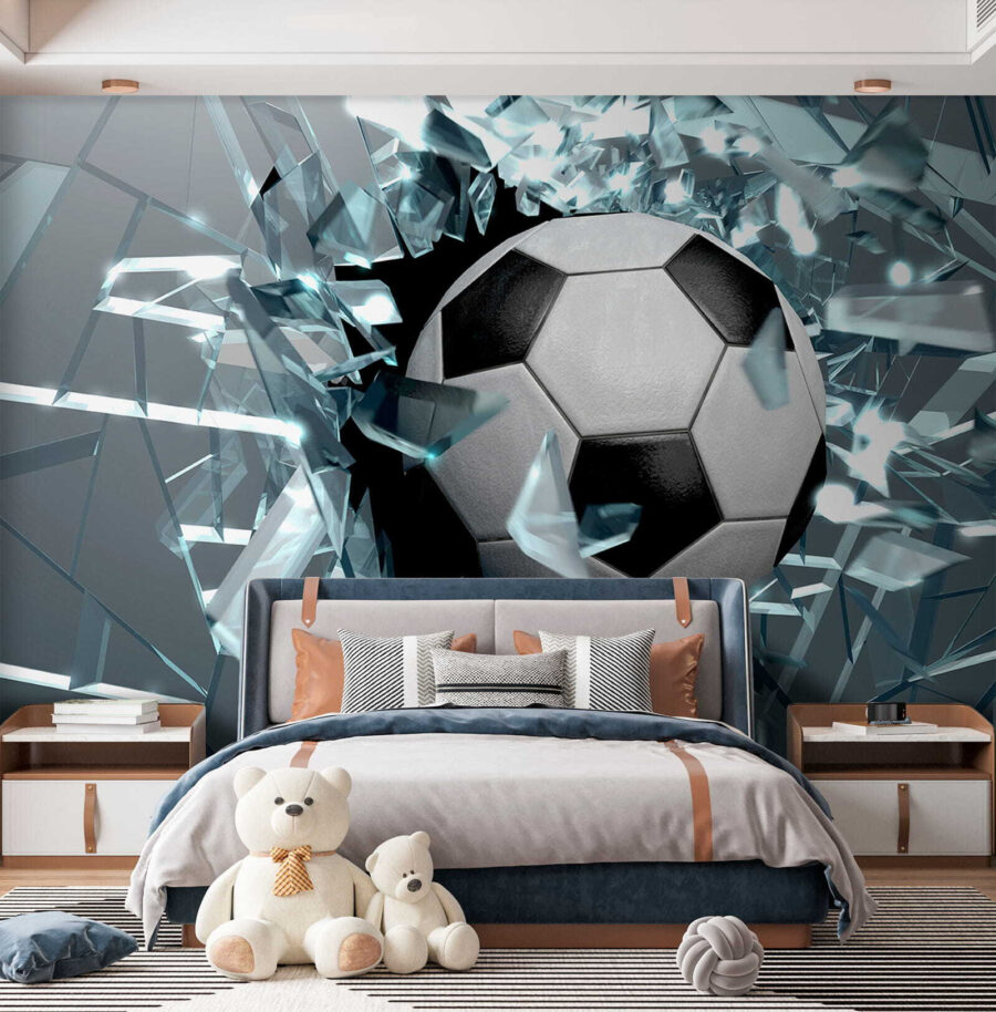 Táto nástenná maľba premení miestnosť na živé dobrodružstvo a prenesie vzrušujúcu energiu futbalu priamo na vašu stenu. Predstavte si silnú futbalovú loptu, ktorá preráža pomyselnú bariéru, úlomky skla iskria živú atmosféru. Je to, akoby váš priestor práve strelil najvyšší gól, takže je ideálny pre deti, ktoré snívajú o tom, že sa stanú superhviezdami na ihrisku. Len si to predstavte – prichádzajú k vám priatelia, oči sa rozširujú a otázky lietajú. Ktoré dieťa by sa pri tejto dynamickej scéne necítilo ako šampión? Je to viac než len dekorácia; je to inšpirácia, vzrušenie a kopec zábavy!