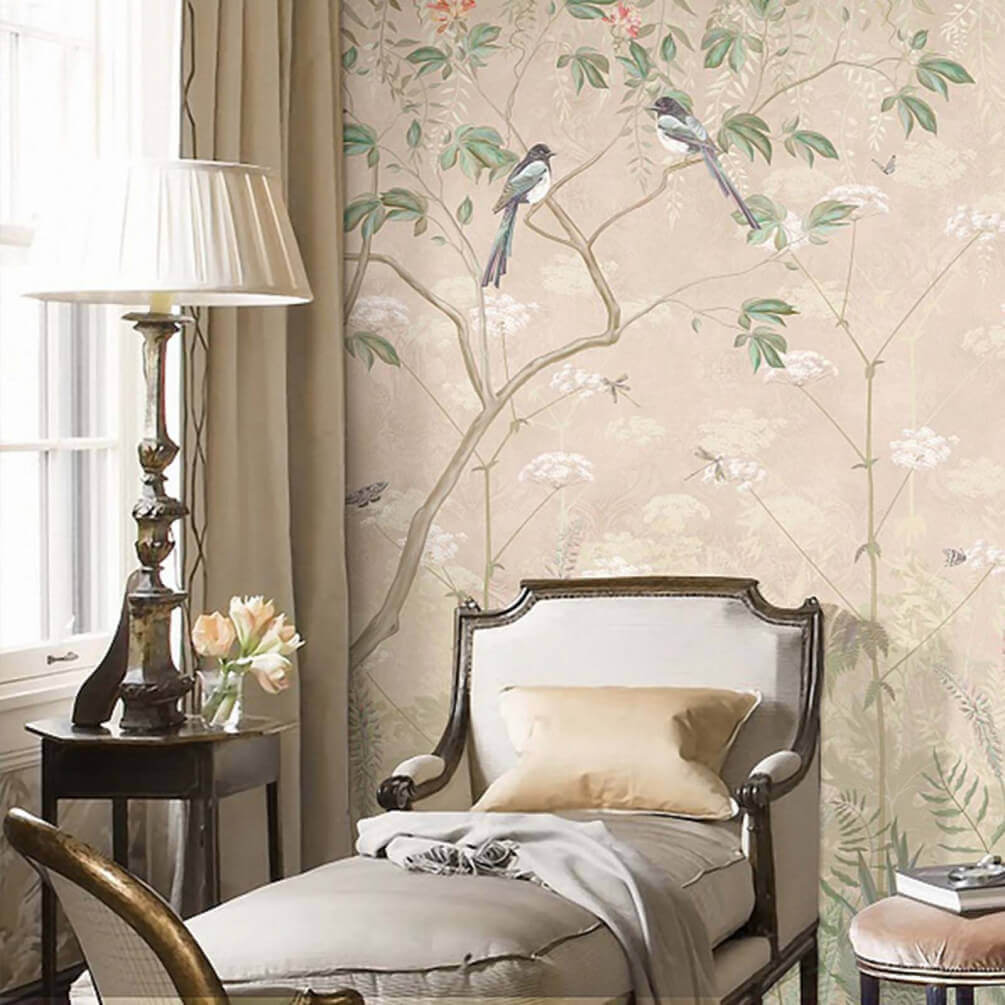 Premeňte akúkoľvek miestnosť na pokojné útočisko s touto nádhernou nástennou maľbou, na ktorej sú zobrazené krehké vtáky posadené medzi bujnou zeleňou a žiarivými kvetmi. Je to ako priniesť kúsok prírody dovnútra a pozvať štebotanie a šepot vonkajšieho sveta priamo do vášho obývacieho priestoru. Predstavte si, že popíjate kávu a máte pocit, ako keby ste boli v pokojnej záhrade a počúvali šum vetra v listoch. Tento akvarelový dizajn nielen dodáva farbu, ale vytvára aj upokojujúcu atmosféru, vďaka ktorej sa aj pondelkové rána zdajú byť o niečo ľahšie. Je ideálny do každého útulného kútika alebo ako výrazný prvok, ktorý určite vyvolá radosť a možno aj trochu snenia. Prečo si do domu nepriniesť trochu fantázie a tepla?