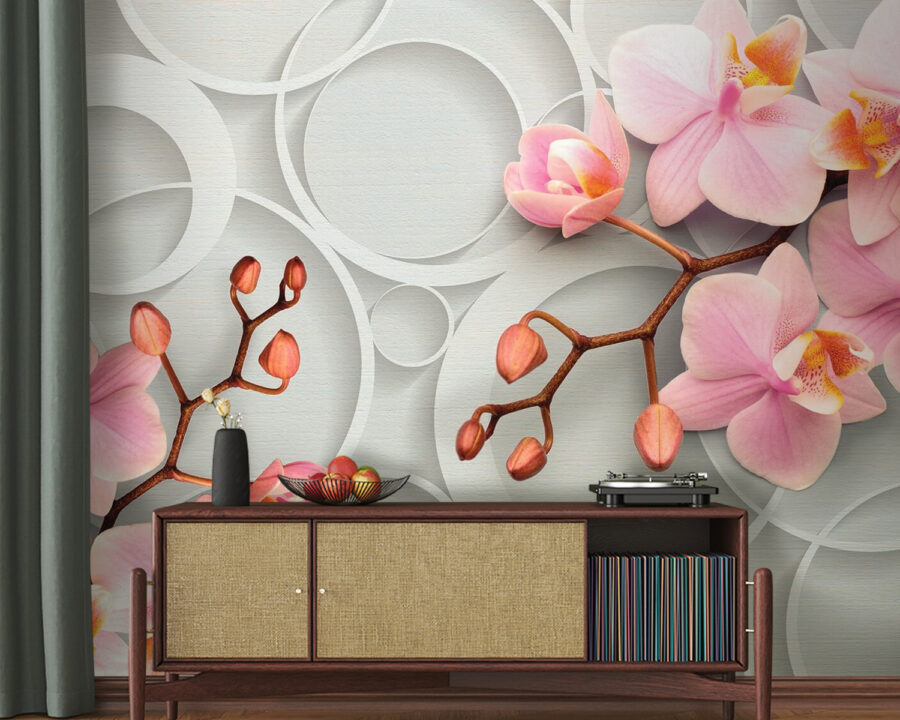 Premeňte svoj priestor s nástennou maľbou „Jemné kvety na kruhovom pozadí“. Predstavte si, že vstúpite do miestnosti, kde jemné ružové orchidey tancujú na pozadí jemných kruhov – ako keby sa príroda a umenie rozhodli usporiadať útulnú malú párty. Jemné odtiene a elegantný dizajn vytvárajú atmosféru, ktorá pôsobí ľahko a povzbudivo, ideálnu pre lenivé nedeľné rána alebo popíjanie kávy pri čítaní dobrej knihy. Kto by nemiloval kúsok kvetinového kúzla, ktoré rozžiari deň? Je to viac ako dekorácia, je to nálada. Len si predstavte, ako by vaši priatelia zostali v úžase, keď by vošli dnu – komplimenty sú zaručené! Privítajte kúsok prírodnej krásy priamo na svojich stenách a sledujte, ako váš domov rozkvitne štýlom.