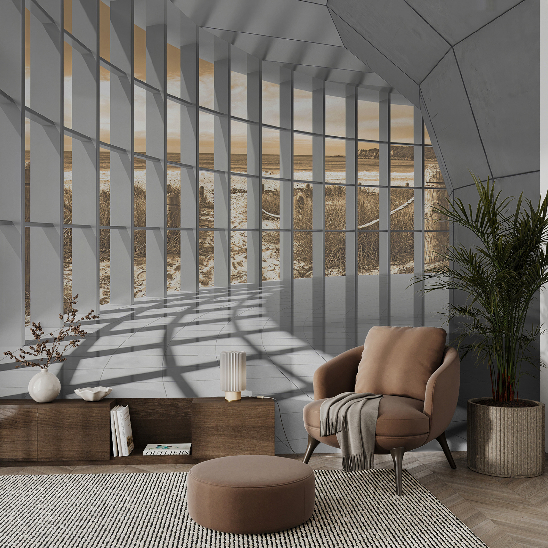 Premeňte akýkoľvek priestor na oázu svetla a perspektívy pomocou tejto úžasnej nástennej maľby. Predstavte si, že vstúpite do obrovskej miestnosti plnej okien, z ktorých každé pozýva slnko tancovať po stenách. Umelecká hra tieňov vytvára hrejivý, útulný pocit, takmer akoby ste sa počas lenivého popoludnia zabalili do mäkkej deky. Táto nástenná maľba je ideálna na rozprúdenie konverzácie – hostia budú mať pocit, že sa preniesli na zasnené miesto, a to všetko pri popíjaní kávy. Či už ide o obývaciu izbu, spálňu alebo tvorivý ateliér, táto nástenná maľba dodá kúsok šarmu a pocit úniku, vďaka čomu sa každodenné chvíle budú cítiť o niečo výnimočnejšie. Navyše, kto by nemal rád otvorený výhľad, keď je zavretý v interiéri?