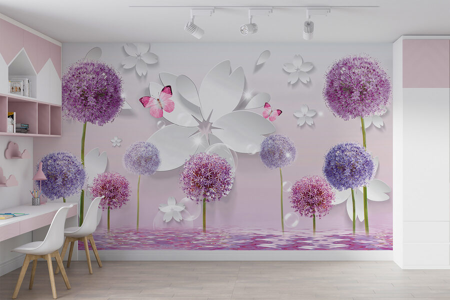 Predstavte si, že vojdete do miestnosti a okamžite máte pocit, že ste vstúpili do pokojnej fialovej krajiny snov! Táto nástenná maľba “Fialové kvety s motýľmi a odleskami” to dokáže. Je to ako pokojný kútik vo fantazijnej záhrade, kde jemné, nadýchané fialové kvety a nežné motýle hrajú navzájom farbami. Odrazy dodávajú čarovný nádych, takmer akoby kvety jemne bozkávali vodu. Perfektne sa hodí na vytvorenie upokojujúcej atmosféry v akejkoľvek miestnosti – myslite na spálňu, obývačku alebo aj na útulný kútik na čítanie. Zakaždým, keď sa naň pozriete, zistíte, že sa zhlboka a uvoľnene nadýchnete, akoby ste takmer cítili vôňu kvetov a ľahký vánok. Možno sa dokonca pristihnete pri tom, že snívate o niečo dlhšie ako zvyčajne. Ak ste hľadali spôsob, ako vniesť do interiéru nádych prírody a pokoja, táto nástenná maľba akoby vám vesmír našepkával: “To je ono!”