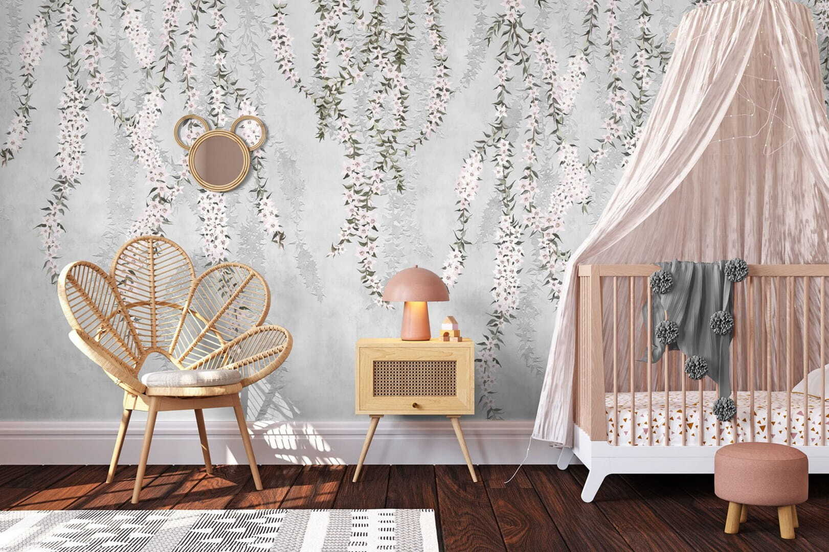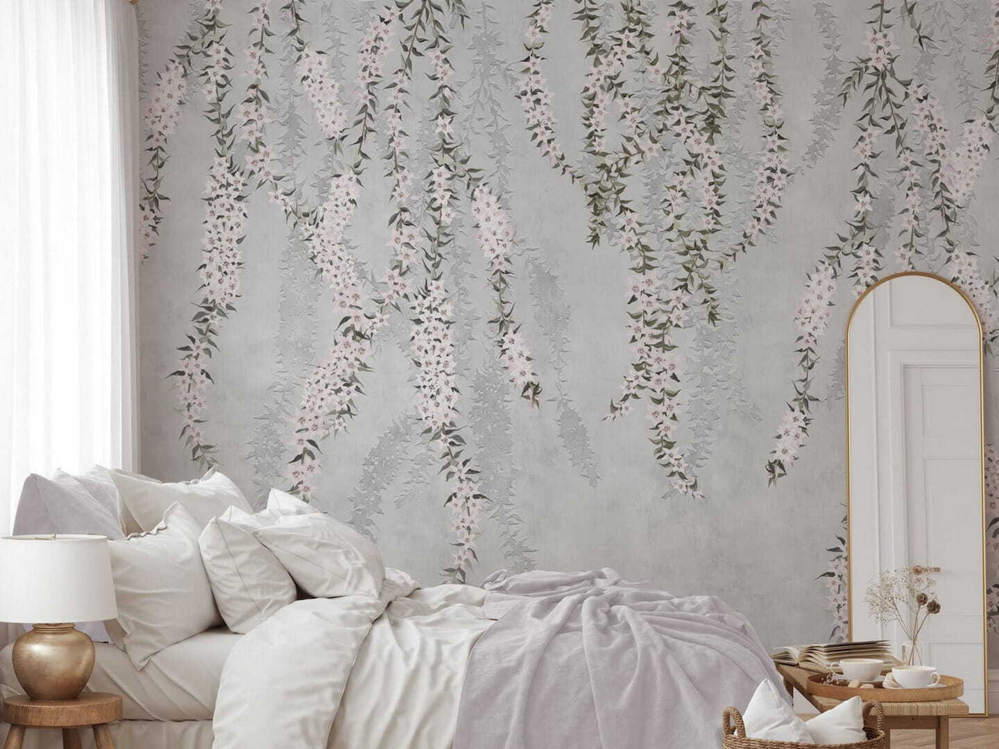 Premeňte akúkoľvek miestnosť na pokojné útočisko s touto úžasnou nástennou maľbou s jemnými kvetmi, ktoré sa kaskádovito rozprestierajú ako prírodná drapéria. Predstavte si, že sa každé ráno zobudíte a privíta vás táto krása – hovorte o tom, že deň sa začína na jasnú nôtu! Jemné farby a príťažlivý dizajn sú ideálne na to, aby ste do interiéru vniesli kúsok tropov. Či už ide o útulný čitateľský kútik alebo živú jedáleň, táto nástenná maľba bez námahy dodá šarm bez toho, aby zahltila zmysly. Je to, akoby vám steny práve pošepkali: “Hej, poďme si oddýchnuť.” Ideálne na pridanie jemného dotyku, ktorý hovorí: “Život je lepší v obklopení kvetov.”