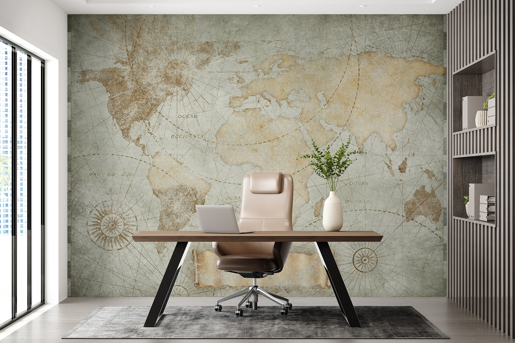 Pozrite si túto nástennú maľbu s vintage mapou sveta – je to ako mať kúsok histórie priamo na stene. Táto fototapeta je ideálna pre milovníkov cestovania alebo pre všetkých, ktorí majú radi starožitnosti, a do každej miestnosti vnesie kúzlo starého sveta. Predstavte si, ako sa pod touto podrobnou mapou krútite s knihou a prstom sledujete starobylé cesty. Tlmené tóny a starý vzhľad jej dodávajú útulný, zažitý pocit. Nie je to len dekorácia – je to podnet na rozhovor. Navyše vás môže inšpirovať k ďalšiemu veľkému dobrodružstvu. Totálna výhra pre vaše steny!