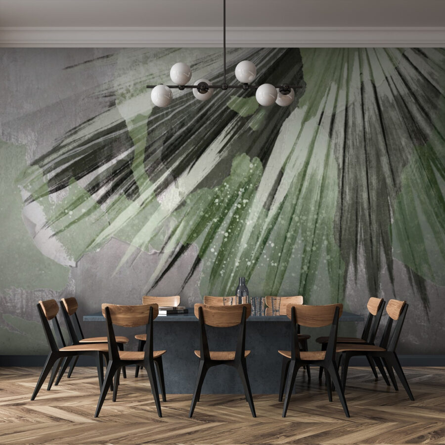 Premeňte svoj priestor na tropickú oázu s touto úžasnou nástennou maľbou s motívmi paliem inšpirovanými prírodou. Predstavte si, že sa prebudíte a máte pocit, ako keby ste boli priamo v srdci pokojného lesa, kde jemné zelené farby a mäkké textúry vytvárajú upokojujúcu atmosféru. Je to ako okamžitý režim dovolenky! Abstraktné umenie sa krásne hodí k akémukoľvek interiéru a dodáva vašim stenám extra štýl bez toho, aby kričalo o pozornosť. Táto tapeta je ideálna do útulného kútika na čítanie alebo do živého obývacej izby a prináša teplo a náznak dobrodružstva. Kto by nechcel popíjať rannú kávu obklopený krásou prírody? Vymeňte nudné steny za kúsok raja – nikdy nebudete ľutovať!