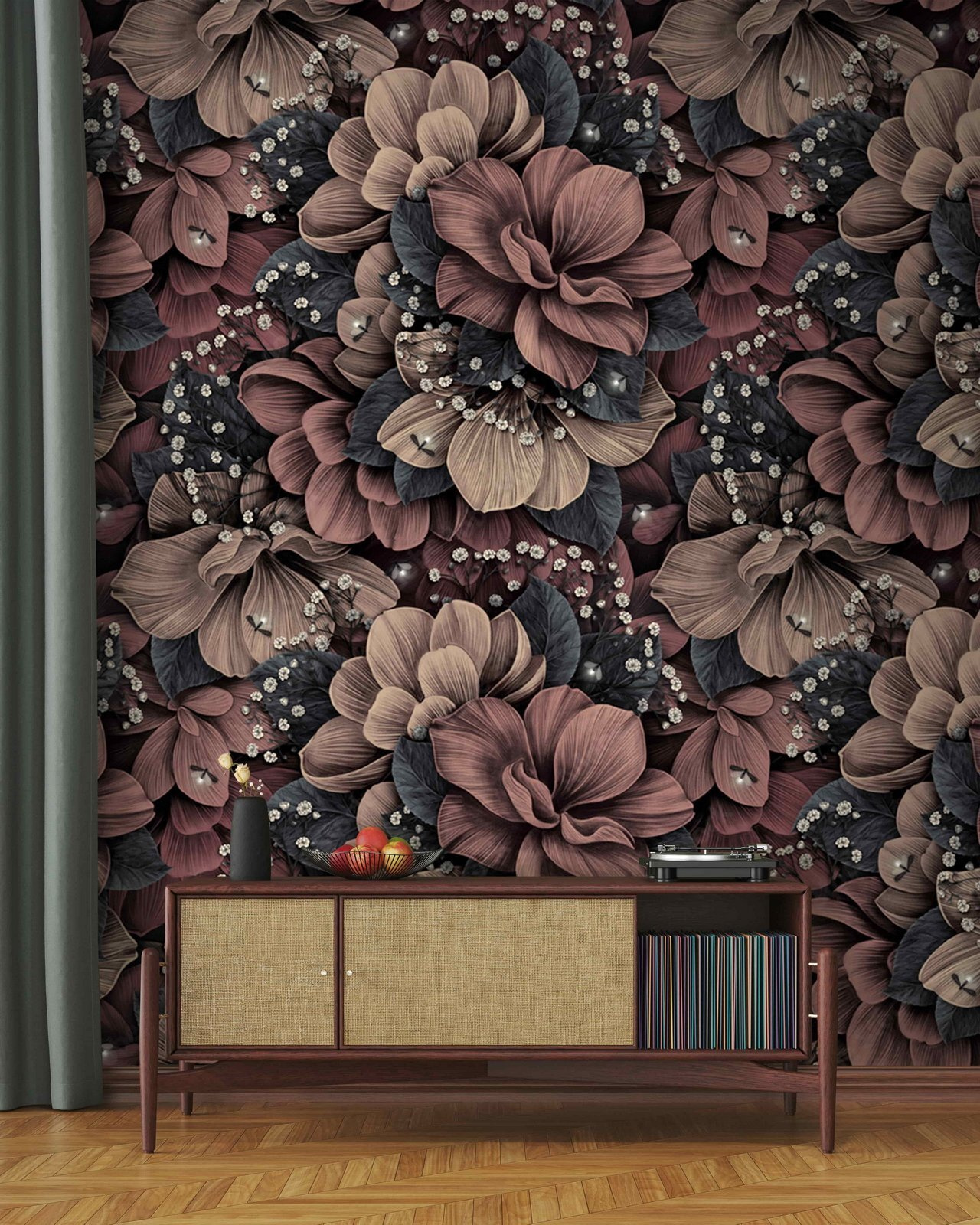 Predstavte si to vo svojej obývačke: elegantný kvetinový vzor, na ktorý sa chcete pozerať celý deň. Táto nástenná maľba má hrejivý, zložitý dizajn, ktorý sa zdá byť takmer živý. Sýte farby sa nádherne prelínajú a vytvárajú pocit hĺbky, ktorý vás vtiahne do deja. Je to ako mať sviežu záhradu priamo na stene, bez potreby zalievania.