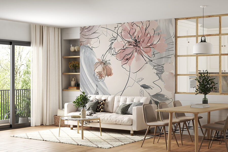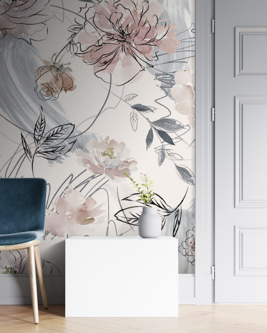 5 recenzií k Fototapety Jemná kvetinová skica s akvarelovými akcentmi