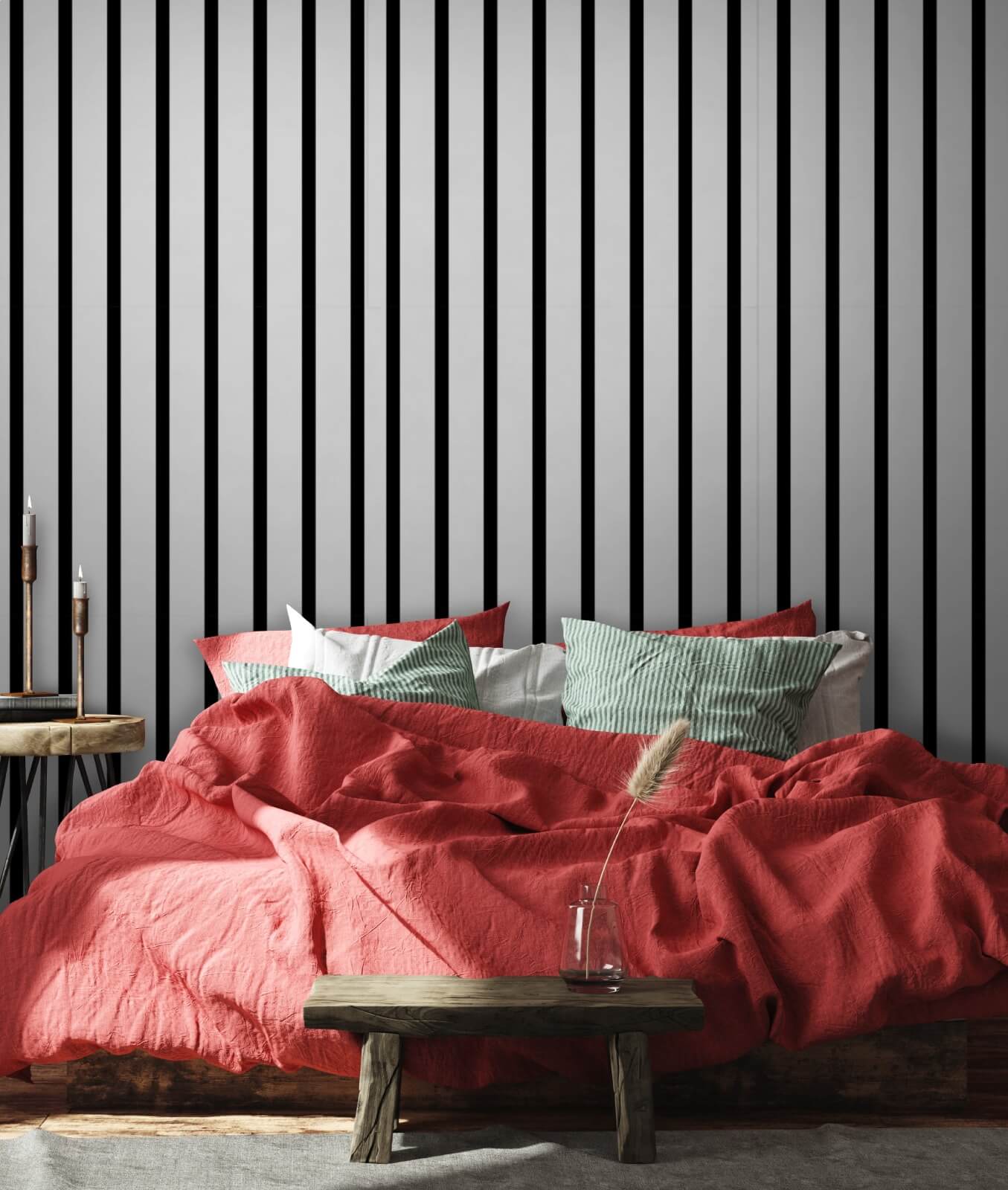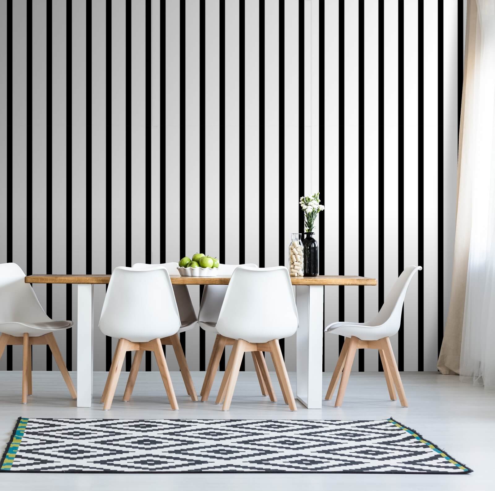 Imagine stepping into a room where black and white vertical lines just invite you in, right? This mural isn’t just a wall covering; it’s like a stylish handshake with your decor. It’s bold but strangely calming, like sipping tea while gazing at a minimalist art piece. Whether it’s gracing your living room, home office, or even an artsy dining area, it has this uncanny ability to make space feel a bit larger—like magic, but without the top hat.