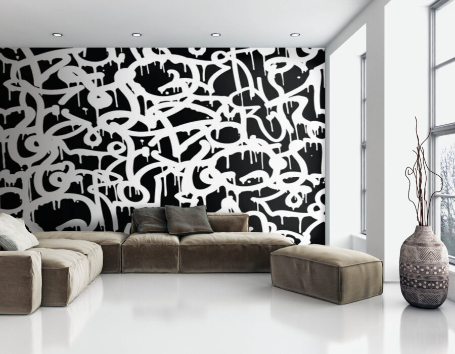 Už ste niekedy vošli do miestnosti a mali pocit, že steny rozprávajú? Táto nástenná maľba „Black and White Graffiti“ práve to robí. Svojou živou kombináciou kvapkajúcich, abstraktných bielych čiar na elegantnom čiernom pozadí dodáva umelecký náboj, ktorý dokáže aj ten najnudnejší priestor premeniť na avantgardnú umeleckú galériu. Predstavte si, že popíjate kávu, pozeráte na túto nástennú maľbu a cítite inšpiráciu, aby ste uvoľnili svojho vnútorného umelca. Alebo je to len téma na rozhovor s priateľmi – „Čo to vlastne znamená?“ Nechajte ju podnietiť nápady alebo jednoducho rozžiariť nudný kútik. Nie je to len dekorácia, je to zážitok, ktorý čaká na svoje naplnenie! Je odvážna, trochu hravá a perfektná pre každého, kto miluje jedinečné prvky vo svojom domove.