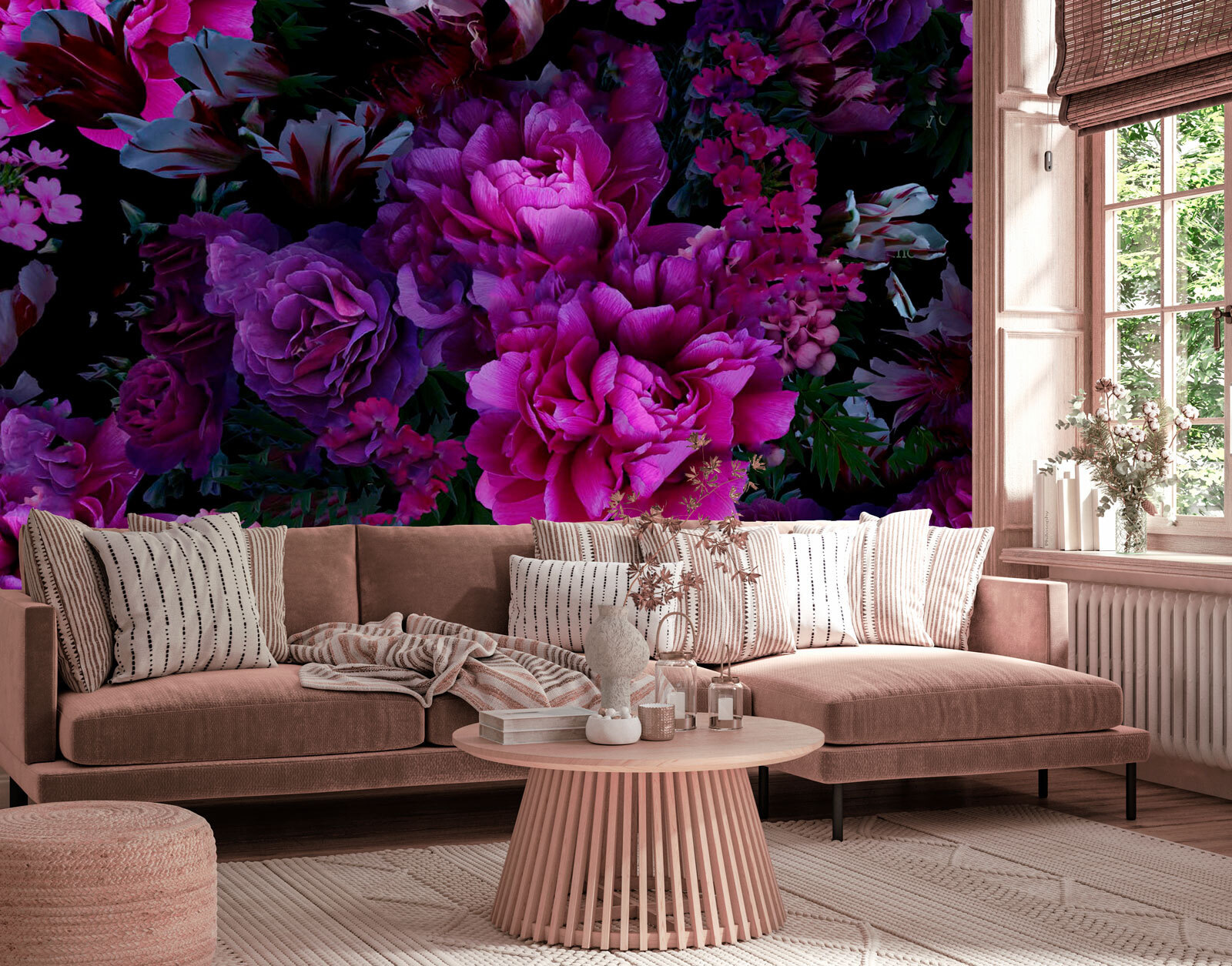Premeňte akúkoľvek stenu na žiarivý únik s touto úžasnou fototapetou “Skupina fialových kvetov”. Predstavte si, že vstúpite do miestnosti, ktorá pripomína tajnú záhradu – kde sa levanduľa stretáva s purpurovou – a vytvára atmosféru, ktorá upokojuje a zároveň dodáva energiu. Sýte farby vystupujú na tajomnom tmavom pozadí, vďaka čomu je dokonalým ústredným bodom. Premýšľajte o tom, ako by mohla rozžiariť útulný čitateľský kútik alebo dodať šmrnc fádnej chodbe. Priatelia sa budú zastavovať uprostred vety, očarení kvetmi. Kto by povedal, že stena môže byť taká živá? Každý pohľad odhalí niečo nové a každý deň sa zmení na mini jarné dobrodružstvo.