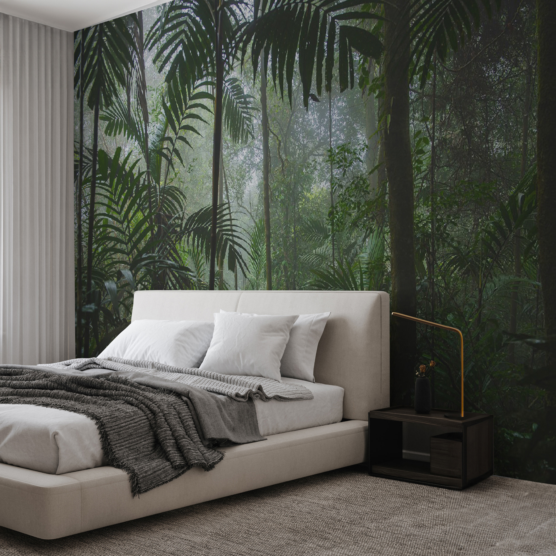 Predstavte si, že vstúpite do hustej, hmlistej džungle – priamo u vás doma. Presne to do vášho priestoru prinesie táto fototapeta “Hustá džungľa s hmlistou atmosférou”. Je to ako mať na stene čarovný okamih hmlistého lesa, ktorý zamrzol v čase. Tá hlboká zeleň a jemná, zahaľujúca hmla vás pozývajú k odpočinku, možno vás dokonca inšpirujú k malému snívaniu o dobrodružstvách v divočine. Ideálny do každej miestnosti, ktorá potrebuje dotyk prírody alebo upokojujúce vibrácie. Krásne sa kombinuje s dreveným nábytkom, nemyslíte? Malý únik z každodenného zhonu bez toho, aby ste museli vyjsť von.