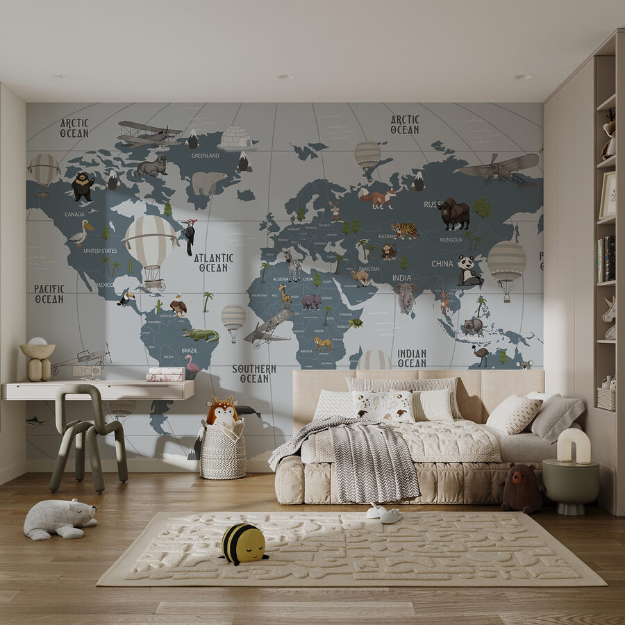 Predstavte si svet, v ktorom sa dobrodružstvo vznáša vysoko, a to všetko v pohodlí vašej izby. Táto nástenná maľba “Horkovzdušný balón v oblakoch” je ako vstupenka na potulky, ideálna pre malých objaviteľov aj snílkov. Vďaka očarujúcim teplovzdušným balónom vznášajúcim sa nad hravou mapou môžu deti cestovať po celom svete bez toho, aby si museli baliť tašku. Predstavte si chichotanie a vzrušenie, keď budú ukazovať džungle, oceány a chlpatých kamarátov. Nie je to len dekorácia, je to inšpirujúca kulisa pre príbehy, smiech a štipku fantázie. Steny sa stanú oknami do vzdialených krajín, a kto by to nemal rád? Perfektne sa hodí do detskej izby alebo herne, dodáva teplo a rozmar. Nechajte dobrodružstvá začať!