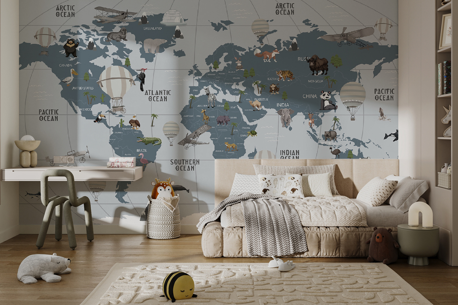 Predstavte si svet, v ktorom sa dobrodružstvo vznáša vysoko, a to všetko v pohodlí vašej izby. Táto nástenná maľba “Horkovzdušný balón v oblakoch” je ako vstupenka na potulky, ideálna pre malých objaviteľov aj snílkov. Vďaka očarujúcim teplovzdušným balónom vznášajúcim sa nad hravou mapou môžu deti cestovať po celom svete bez toho, aby si museli baliť tašku. Predstavte si chichotanie a vzrušenie, keď budú ukazovať džungle, oceány a chlpatých kamarátov. Nie je to len dekorácia, je to inšpirujúca kulisa pre príbehy, smiech a štipku fantázie. Steny sa stanú oknami do vzdialených krajín, a kto by to nemal rád? Perfektne sa hodí do detskej izby alebo herne, dodáva teplo a rozmar. Nechajte dobrodružstvá začať!