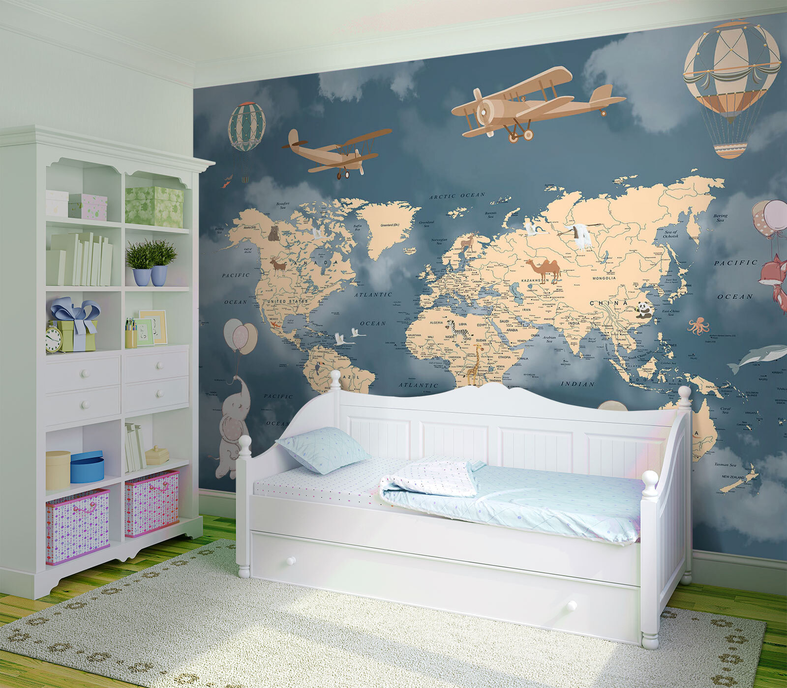 Snívali ste niekedy o tom, že sa budete vznášať v teplovzdušnom balóne, ale v pohodlí svojho domova? Táto nástenná maľba vám pomôže. “Horúcovzdušný balón na oblohe” premení obyčajnú stenu na rozmarnú mapu sveta, doplnenú o vznášajúce sa balóny a zavesené pôvabné zvieratká. Je to ako mini dobrodružstvo pre deti – a úprimne, tak trochu vás to núti pridať sa k nim, však? Perfektne podnecuje zvedavosť a dodáva každej miestnosti hravú, zasnenú atmosféru. Predstavte si rozprávky pred spaním alebo hry s týmto pozadím – nekonečné možnosti! Hodiny zemepisu sa vďaka nemu stanú výletmi okolo sveta. Zamilujú si ho bádatelia všetkých vekových kategórií.