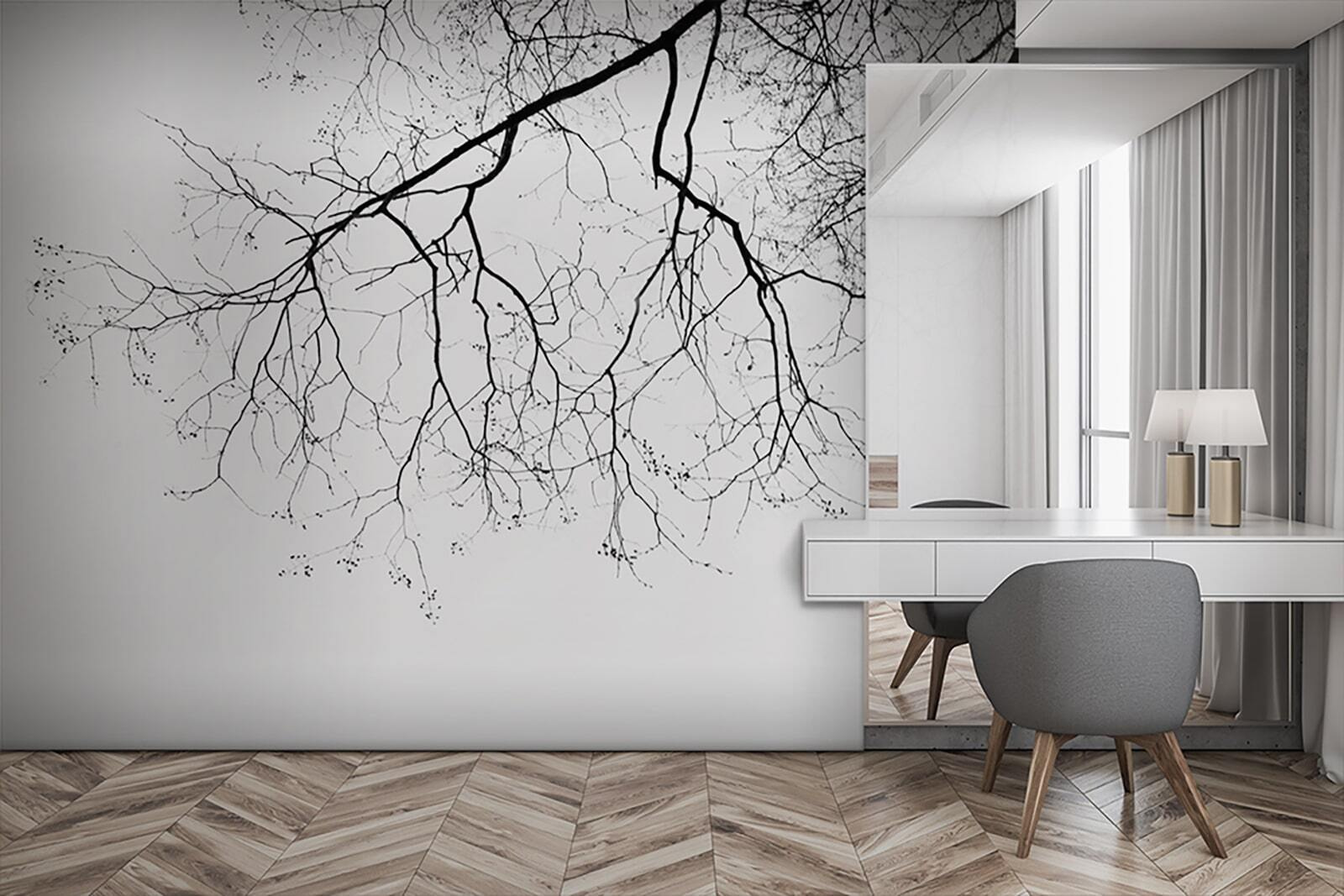 Chcete svojmu priestoru dodať nádych prírody bez neporiadku z padajúceho lístia? Pozrite si túto úžasnú nástennú maľbu holých konárov vytvárajúcich zložité vzory. Je to ako preniesť pokoj zasneženého stromového hája priamo do vašej obývačky. Ľahká na pohľad a plná jemnej drámy pôsobí ako momentka zamrznutá v čase, taká, o ktorej tajne dúfate, že by sa mohla premeniť na ducha stromu.