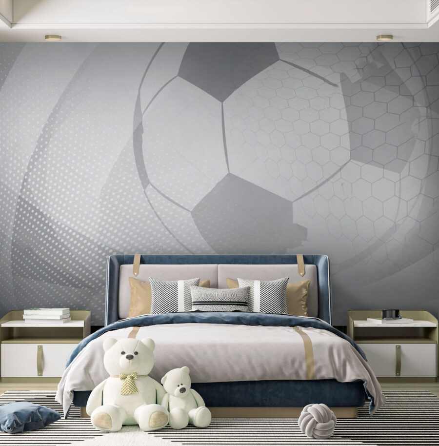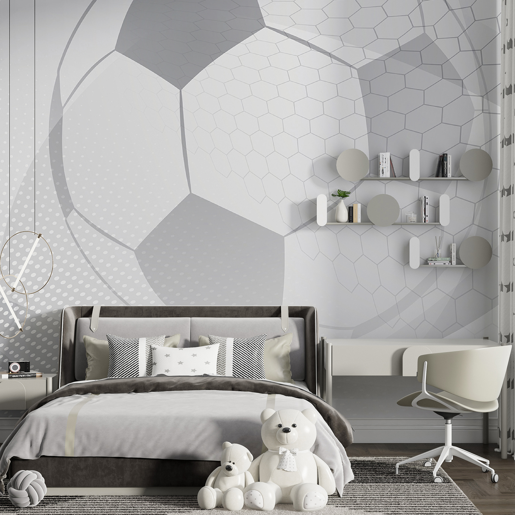S touto geometrickou nástennou maľbou v odtieňoch sivej farby premeníte akýkoľvek priestor na sen milovníkov futbalu. Predstavte si deti, ktoré si kopú nápady, zatiaľ čo sú obklopené hravým dizajnom, ktorý podnecuje ich predstavivosť. Táto nástenná maľba, ktorá je ideálna do herne alebo spálne, dodáva klasickým futbalovým vibráciám moderný nádych. Chladné vzory a tvary priťahujú pohľad a vytvárajú dynamickú atmosféru, ktorá podnecuje vzrušenie a zábavu. Je to ako každodenná oslava gólu – bez špinavého občerstvenia! Pripravte sa na povzbudzovanie kreativity, jednu stenu za druhou.