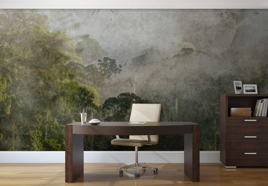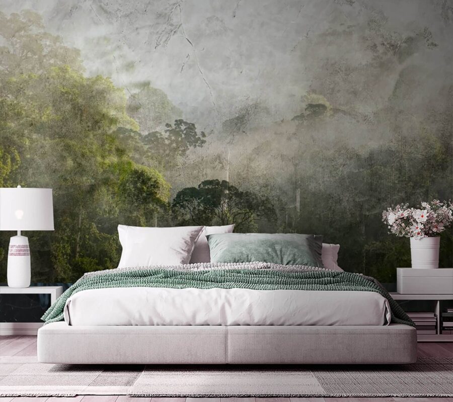 Predstavte si, že vstúpite do rozprávkového hmlistého lesa, bez toho aby ste opustili svoju útulnú obývačku. Táto tapeta „Hmlistý les so stromami“ prináša všetko kúzlo prírody priamo na vaše steny. Jemné zelené a hmlisté sivé odtiene vytvárajú pokojnú, takmer nadpozemskú atmosféru, vďaka čomu máte pocit, ako keby ste mali kúsok divočiny ukrytý vo svojom domove – ideálne na snívanie alebo popíjanie rannej kávy.