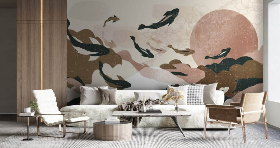 Predstavte si pokojný svet, kde ryby elegantne plávajú v teplom, rozprávkovom nebi. Táto „nástenná maľba rýb na oblohe“ nie je len maľbou, je to pozvánka na snenie. Jemné farby – broskyňová, tyrkysová a zemité tóny – zahalia váš priestor do útulného objatia a vytvoria pozadie, ktoré pôsobí pokojne a hravým dojmom. Je ideálna do obývacej izby alebo kreatívneho kútika, vyvoláva radosť a podnecuje fantáziu. Predstavte si, ako sa zviniete s dobrou knihou a pozriete sa hore, aby ste videli tie ryby tancovať nad vami. Je to malý kúsok mágie, ktorý nám pripomína, že kreativita nepozná hranice. Kto by to nechcel mať vo svojom dome?