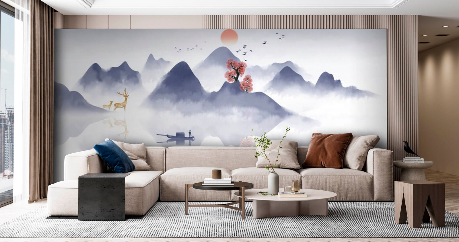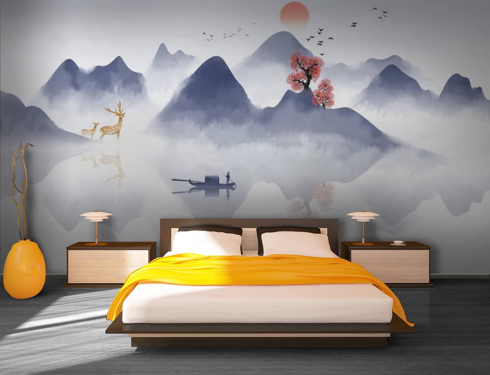 Transform any room into a serene escape with this stunning wall mural. Featuring a tranquil boat gliding through a foggy forest, surrounded by majestic mountains and vibrant trees, it invites you to daydream a little. Imagine sipping coffee while the morning sun peeks over the horizon, casting soft hues on the water. It’s like a mini-vacation every time you walk by. Perfect for those cozy corners or an office that could use some zen vibes. Plus, there’s a deer—because who wouldn’t want a little wildlife watching without leaving the house? Embrace that natural charm!