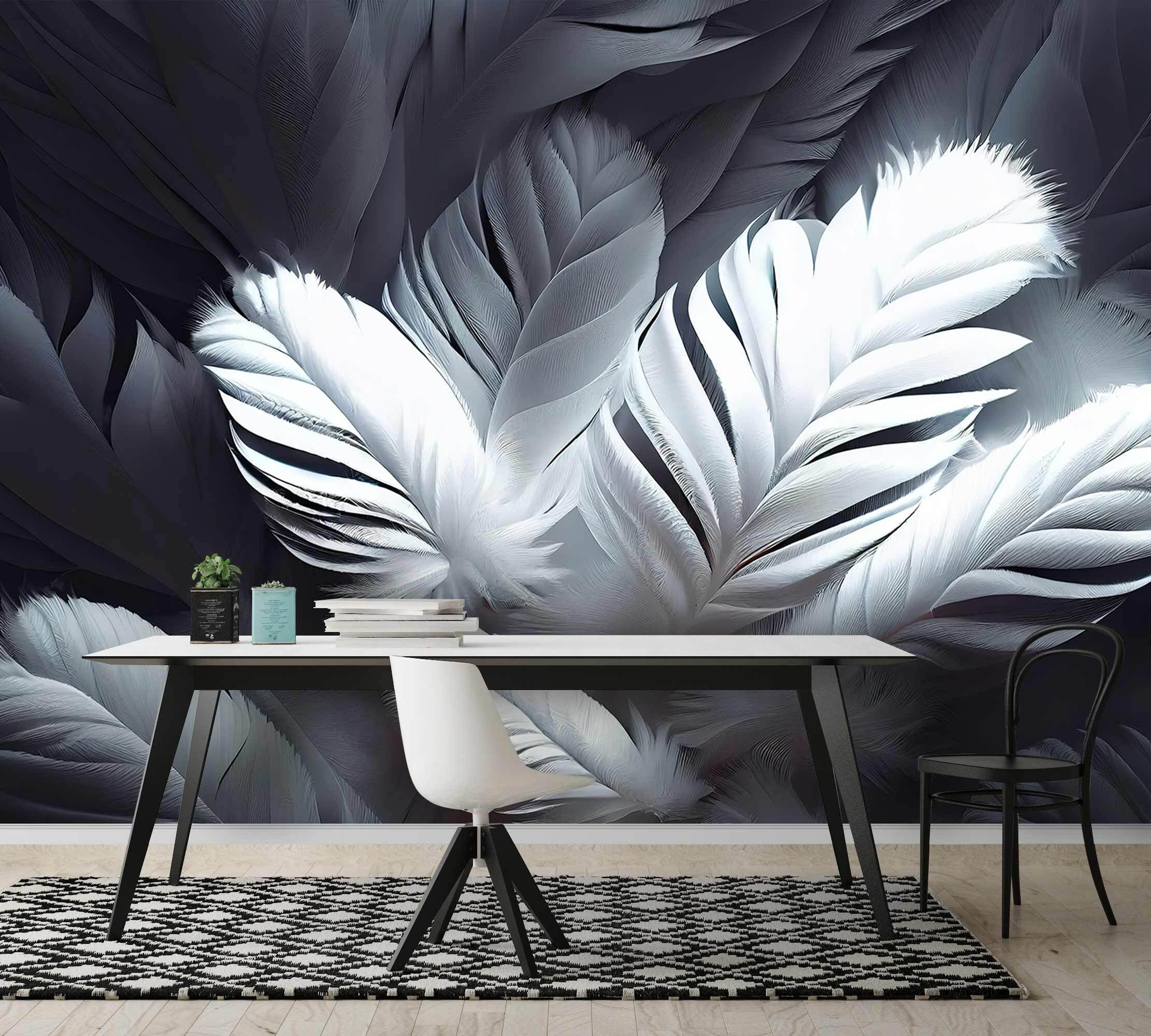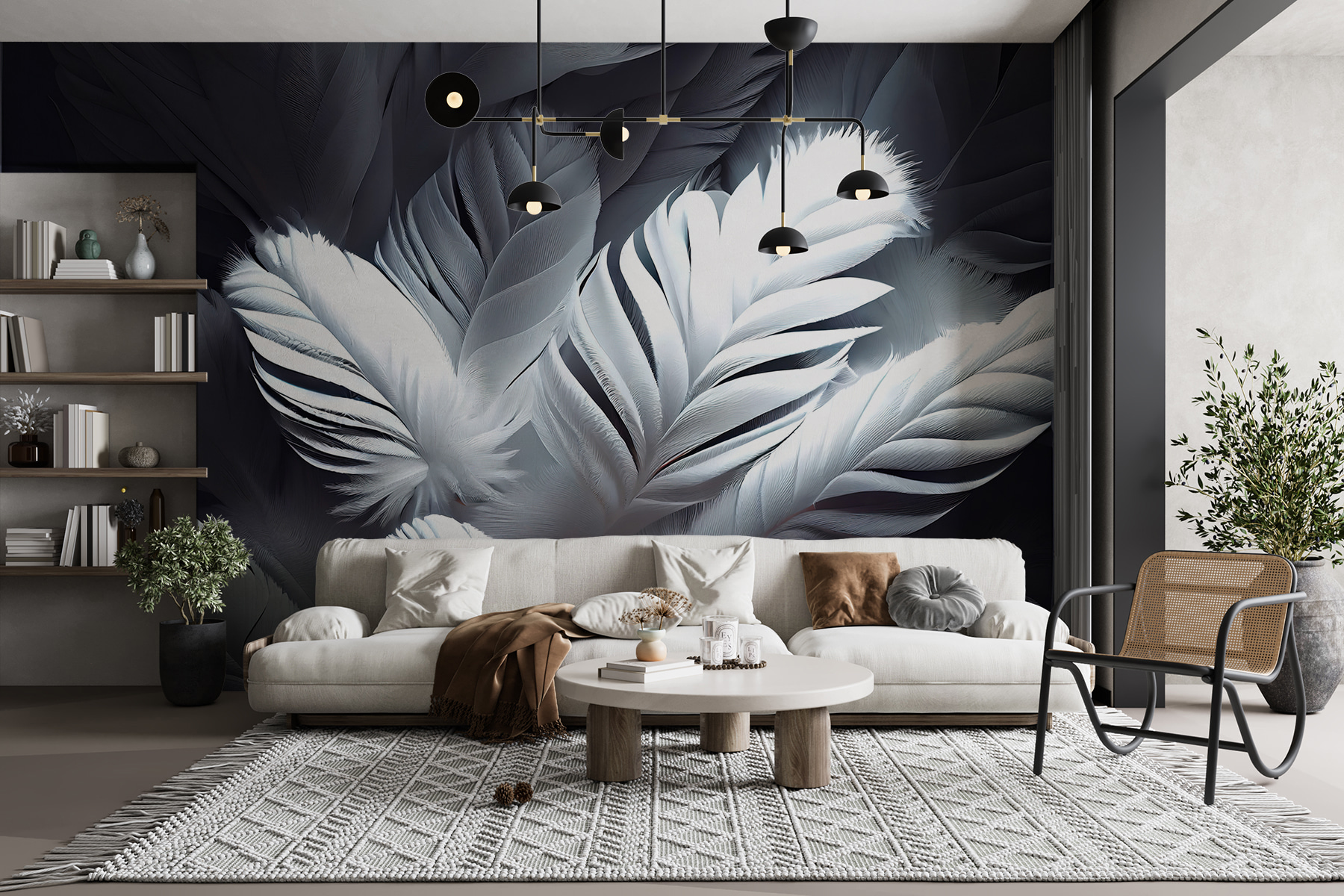 Premeňte miestnosť s “Jemným bielym perím v jemných vrstvách”, kde sa elegancia snúbi s rozmarnosťou. Predstavte si, že vstúpite do priestoru, ktorý je ľahký ako šepot a po stenách tancujú jemné pierka. Táto nástenná maľba dodáva zasnený nádych, vďaka ktorému sa aj ten najrušnejší deň bude cítiť o niečo pokojnejšie. Predstavte si útulné večery strávené v útočisku inšpirovanom pierkami, popíjanie čaju a zahĺbenie sa do dobrej knihy. Je to ako preniesť oblohu do interiéru – to nie je zlé, však? Táto nástenná maľba pri každom pohľade jemne nabáda k relaxácii, vďaka čomu sa domov bude cítiť o niečo výnimočnejšie.