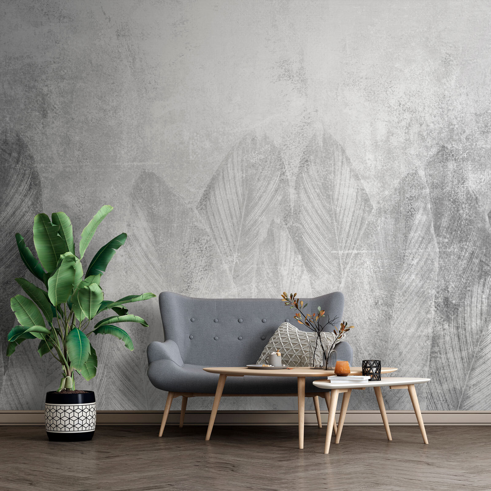 Premeňte každú miestnosť pomocou tejto úžasnej nástennej maľby s jemným vzorom listov v odtieňoch sivej. Predstavte si, že vstúpite do útulného priestoru, kde sa príroda stretáva s umeleckým umením – je to ako mať pokojný les priamo na stene. Jemné odtiene prinášajú pokojnú atmosféru, ktorá je ideálna na relaxáciu po hektickom dni. Navyše je dostatočne univerzálny, aby sa hodil k akémukoľvek štýlu zariadenia. Či už je to vaša obývacia izba alebo tichý čitateľský kútik, tieto pôvabné listy našepkávajú relaxáciu. Táto nástenná maľba je ideálna pre každého, kto chce dodať svieži nádych bez zbytočného rozruchu, a možno v ňom zažiari trochu radosti pri každom vstupe do miestnosti.