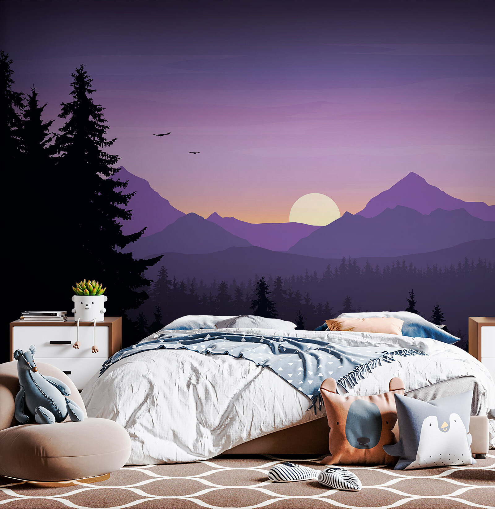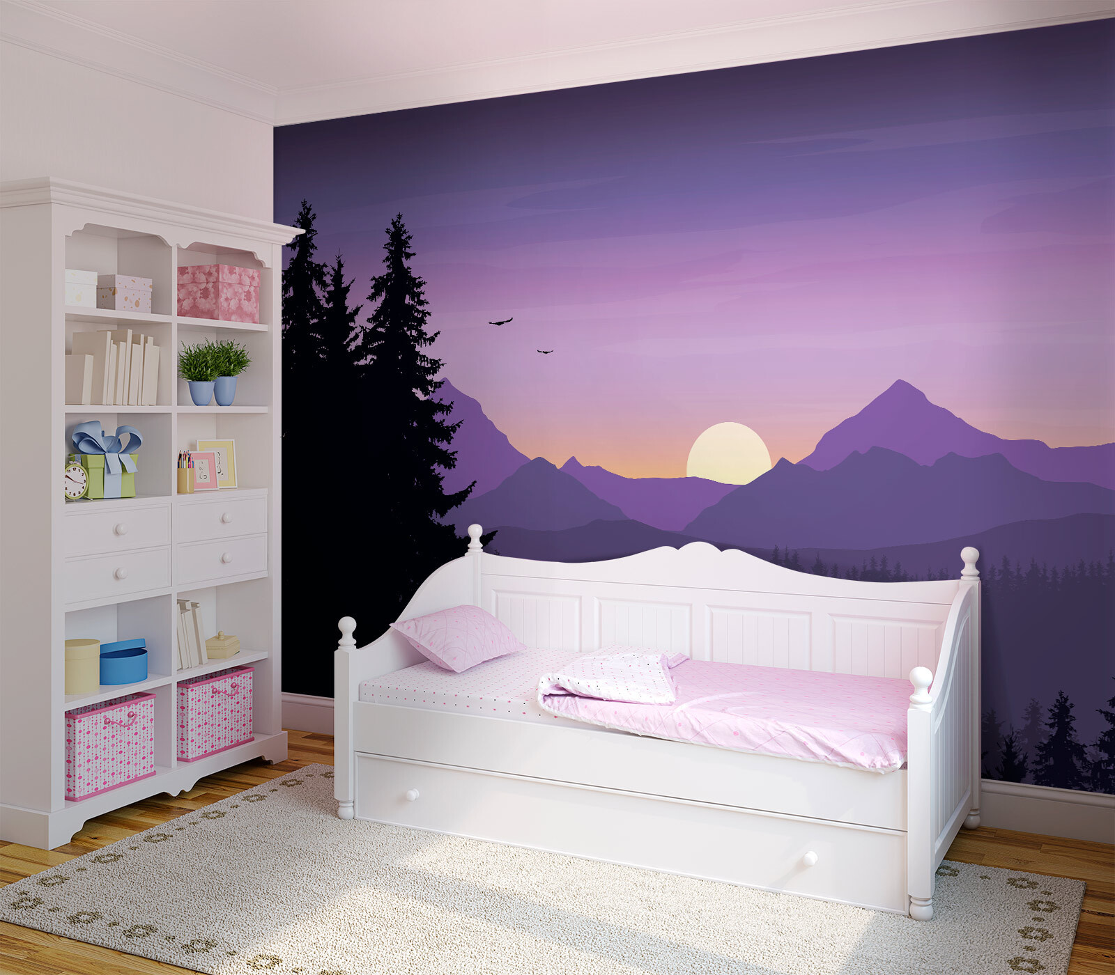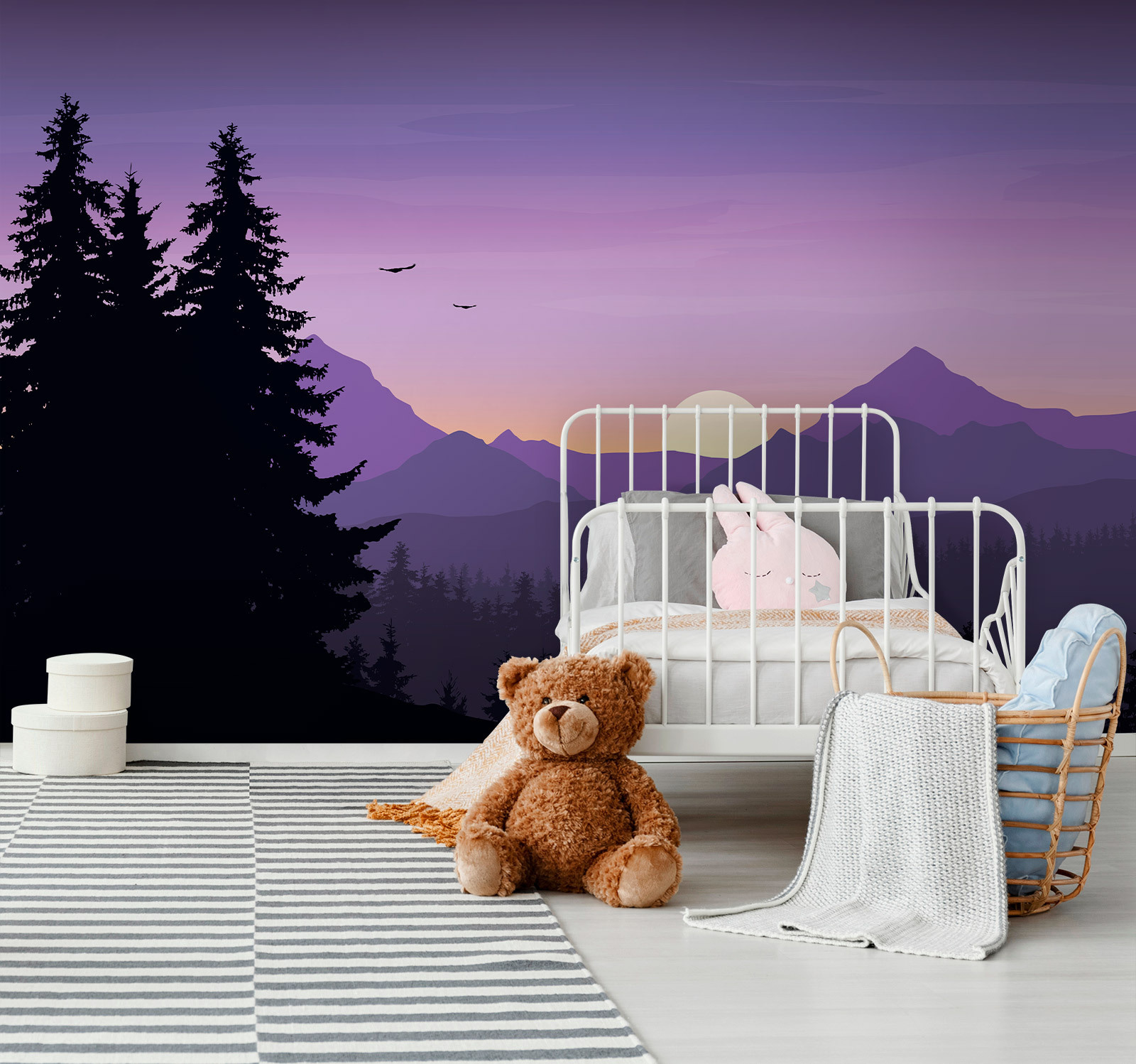 Predstavte si, že vstúpite do útulného útočiska, obklopeného pokojnou krásou prírody – bez toho, aby ste museli opustiť svoj domov. Táto nástenná maľba s nádhernou krajinou stromov a hôr prináša tento sen priamo na vaše steny. Mäkké odtiene fialovej tancujú po oblohe, keď zapadá slnko, a vytvárajú očarujúcu žiaru. Je to ako vaše vlastné pokojné útočisko, kde stres jednoducho zmizne. Predstavte si, ako sa zviniete s dobrou knihou alebo zdieľate príbehy s priateľmi, zatiaľ čo sa kocháte týmto pokojným výhľadom. Každý pohľad na tie majestátne hory a vysoké stromy vás môže inšpirovať k malému dobrodružstvu – alebo aspoň k sneniu o ňom. Ideálne pre milovníkov prírody a tých, ktorí chcú svojmu priestoru dodať nádech pokoja. Prečo nenechať vaše steny, aby hovorili za vás? Veď kto by nechcel mať kúsok prírody vo svojom interiéri?