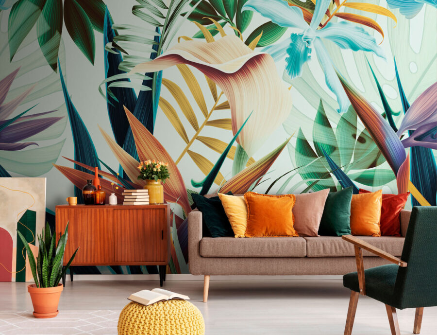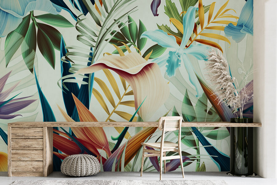 Predstavte si, že popíjate rannú kávu na pozadí žiarivého lístia – máte pocit, že ste sa ocitli v tropickej džungli priamo vo svojej obývačke. Každý list a kvet vyzerá, akoby ho namaľoval botanický umelec s veľkou láskou k výrazným, výrazným farbám. Nie je to len tapeta, je to zážitok, ktorý do vášho priestoru vnesie život a nádych divočiny.