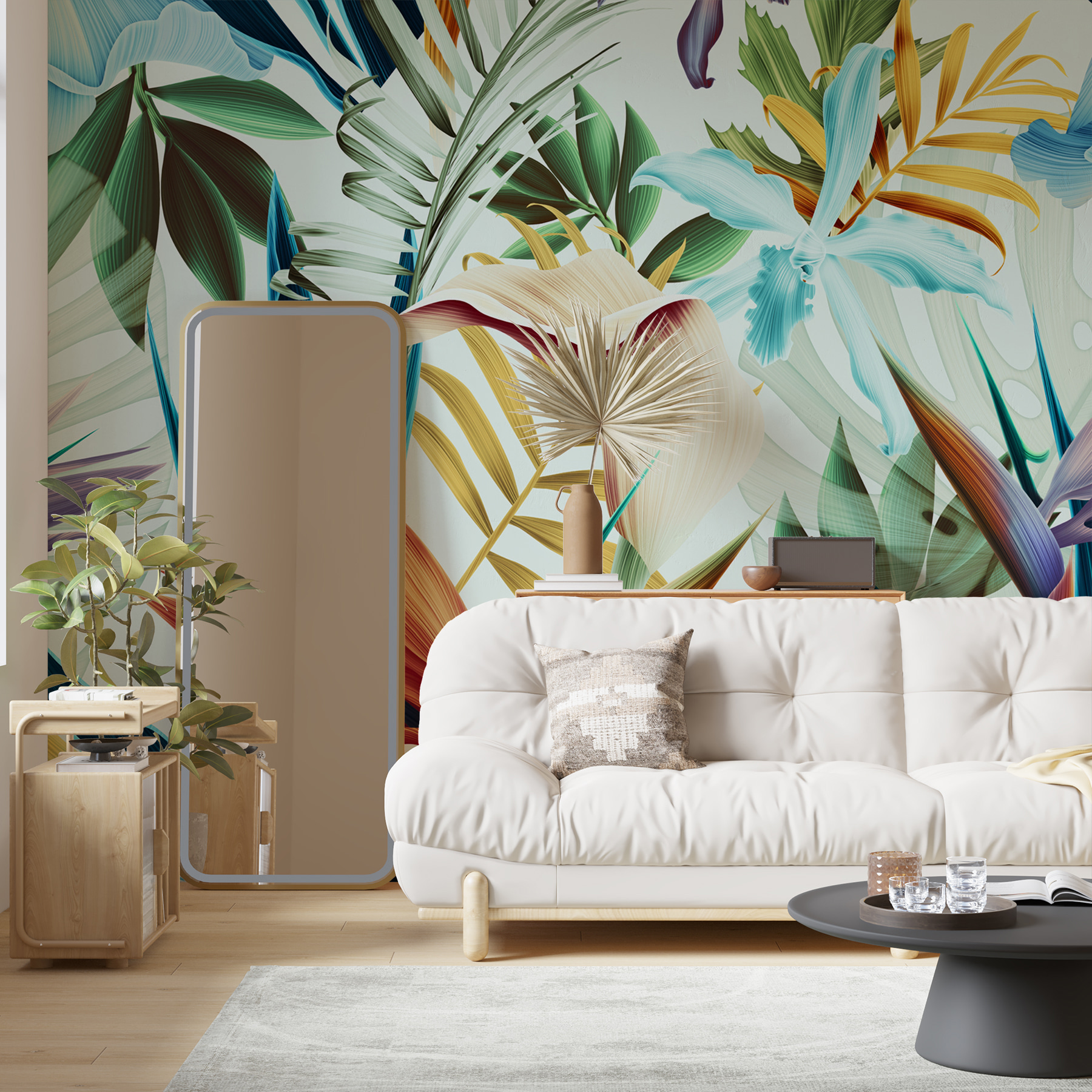 Predstavte si, že popíjate rannú kávu na pozadí žiarivého lístia – máte pocit, že ste sa ocitli v tropickej džungli priamo vo svojej obývačke. Každý list a kvet vyzerá, akoby ho namaľoval botanický umelec s veľkou láskou k výrazným, výrazným farbám. Nie je to len tapeta, je to zážitok, ktorý do vášho priestoru vnesie život a nádych divočiny.