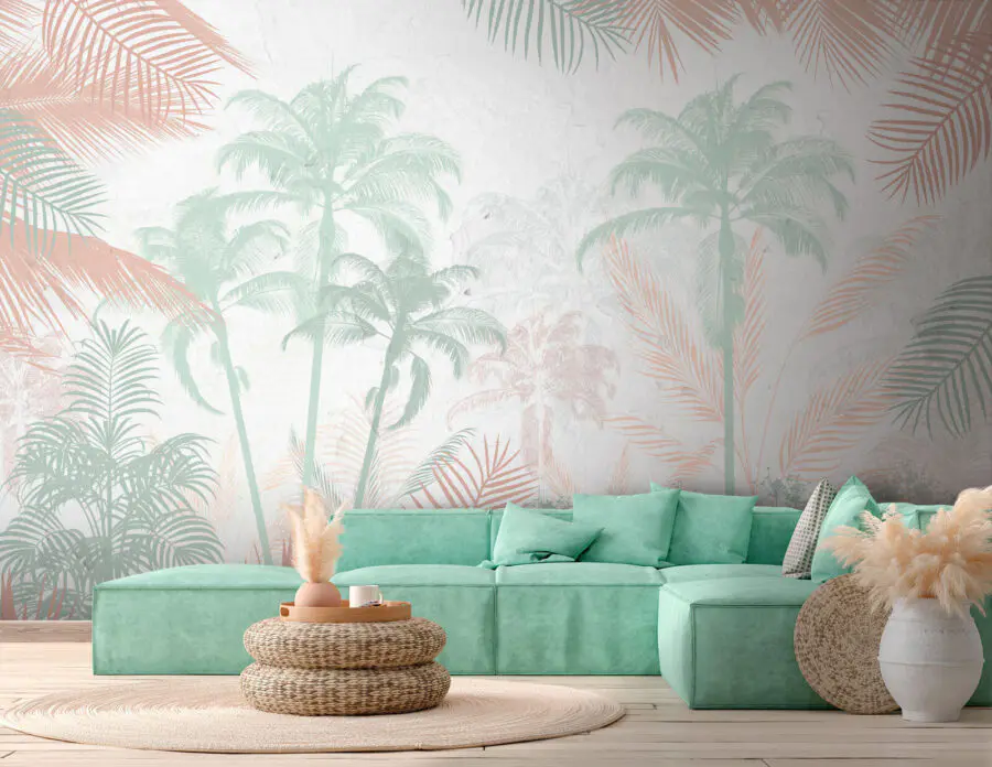 Tlmené tóny sa bez námahy začlenia do akéhokoľvek interiéru a dodajú miestnosti hĺbku bez toho, aby ju zahltili. Či už ste skúsený interiérový dekoratér, alebo si len chcete vylepšiť svoj priestor, táto nástenná maľba vo vás vyvolá chuť uvariť si šálku harmančeka a jednoducho relaxovať. Tak smelo do toho, prineste si domov kúsok trópov a nechajte svoje steny hovoriť o lenivých popoludniach a jemnom vánku. Nie je to len dekor – je to pocit.