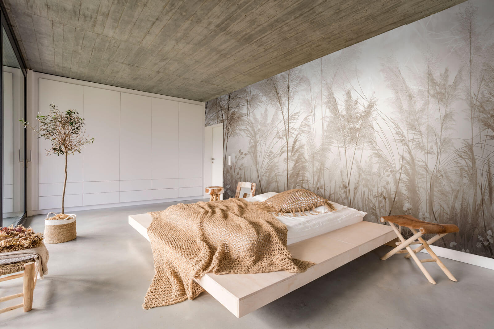 Zemité tóny tejto nástennej maľby vytvárajú upokojujúce pozadie, vďaka čomu ju môžete ľahko kombinovať s obľúbeným dekorom. Predstavte si šálku čaju v ruke, ako sa ponoríte do pohodlného kresla a úplne sa začítate do dobrej knihy. Jemná krása trávy hravo tancuje vo svetle a možno, len možno, inšpiruje k chvíľke snívania. Je to druh umenia, vďaka ktorému sa na obyčajnej stene budete cítiť ako na scéne priamo z pokojného vidieka. Doprajte svojim stenám závan čerstvého vzduchu!