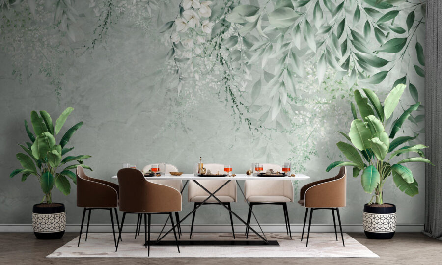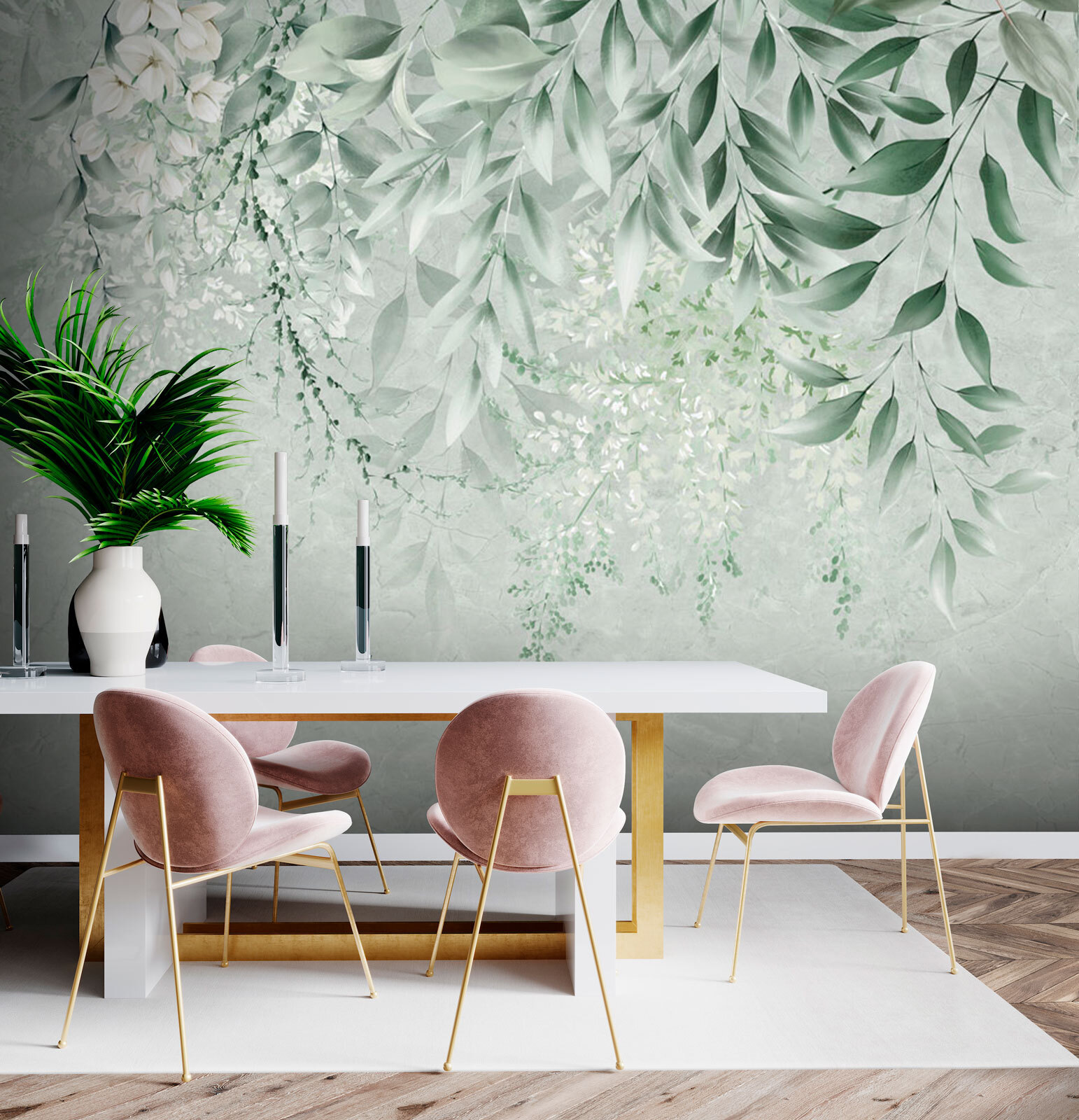 Premeňte akýkoľvek priestor pomocou očarujúcej nástennej maľby “Kvetinová elegancia s jemnými listami”. Predstavte si, že pri každom vstupe do miestnosti vstúpite do oázy pokoja. Táto fototapeta šepká jemnou zeleňou a nežnými kvetmi a vytvára upokojujúce pozadie, ktoré pôsobí jednoducho správne – takmer ako nežné objatie od prírody. Je ideálna do útulného čitateľského kútika alebo aj nad jedálenský stôl, kde podnieti rozhovor a možno aj pár snov o potulkách sviežou záhradou. Nie je to len dekorácia, ale aj výzva k hrejivosti a pokoju, vďaka ktorej sa každý, kto ju uvidí, na chvíľu zastaví. Kto by nechcel mať doma kúsok pokoja?