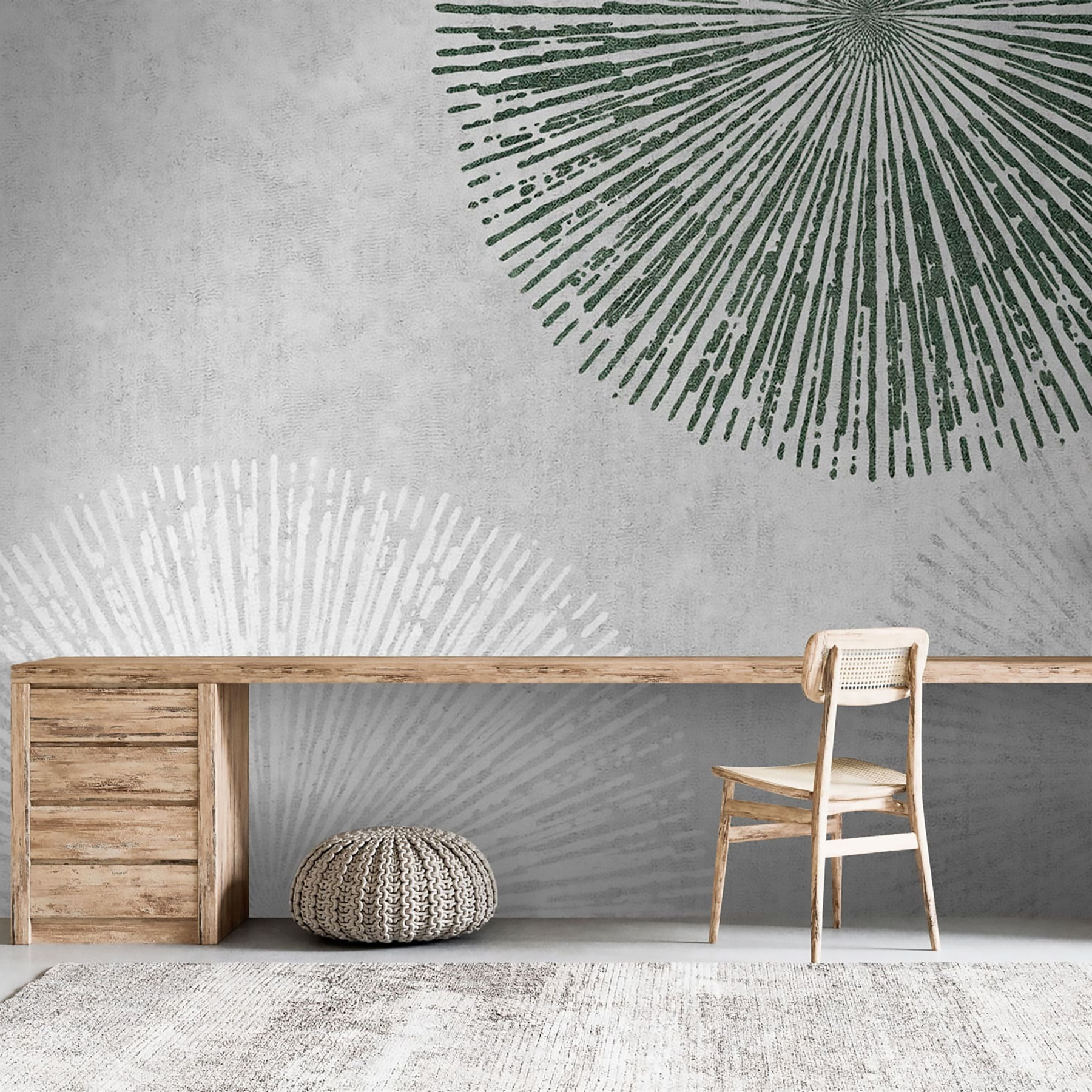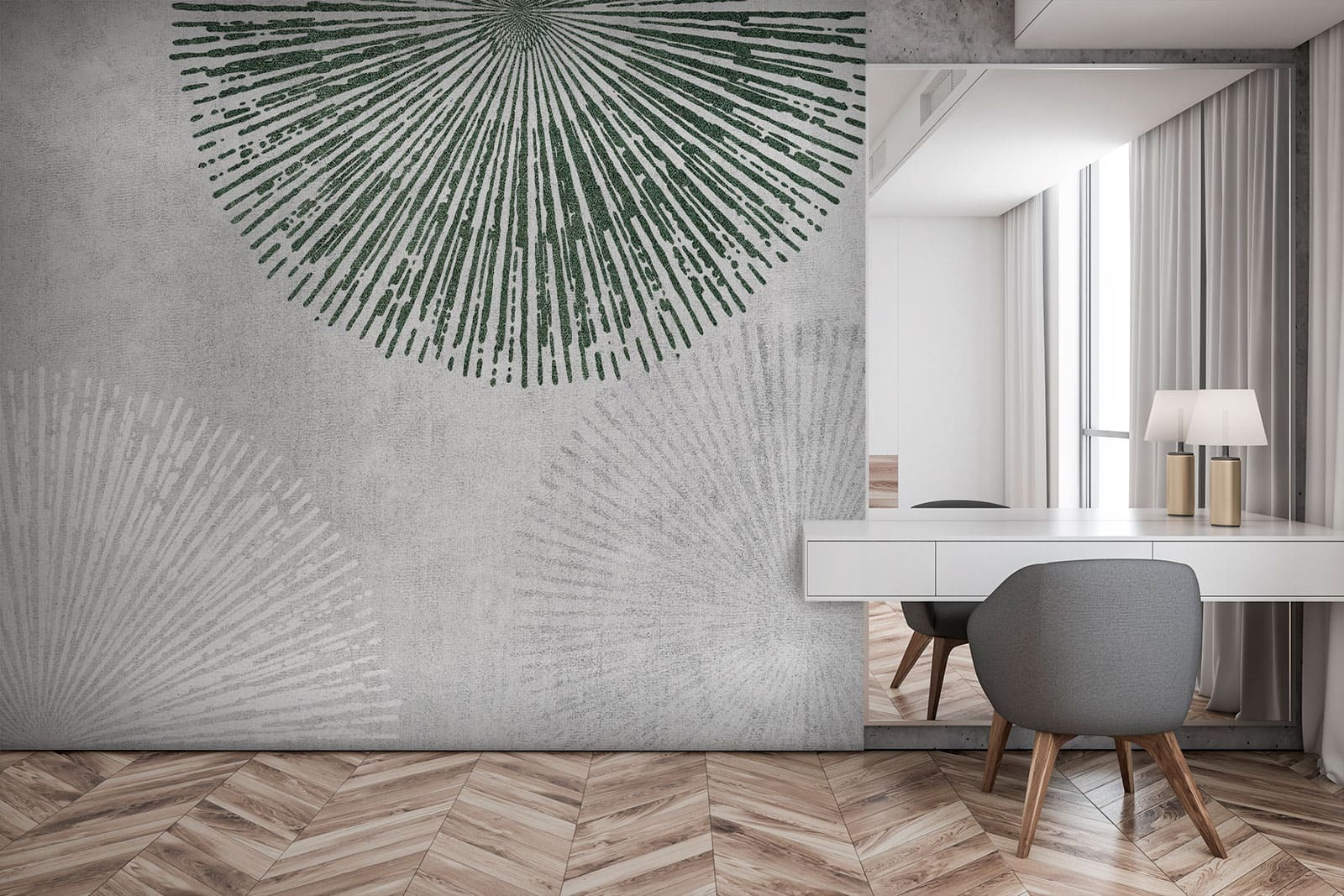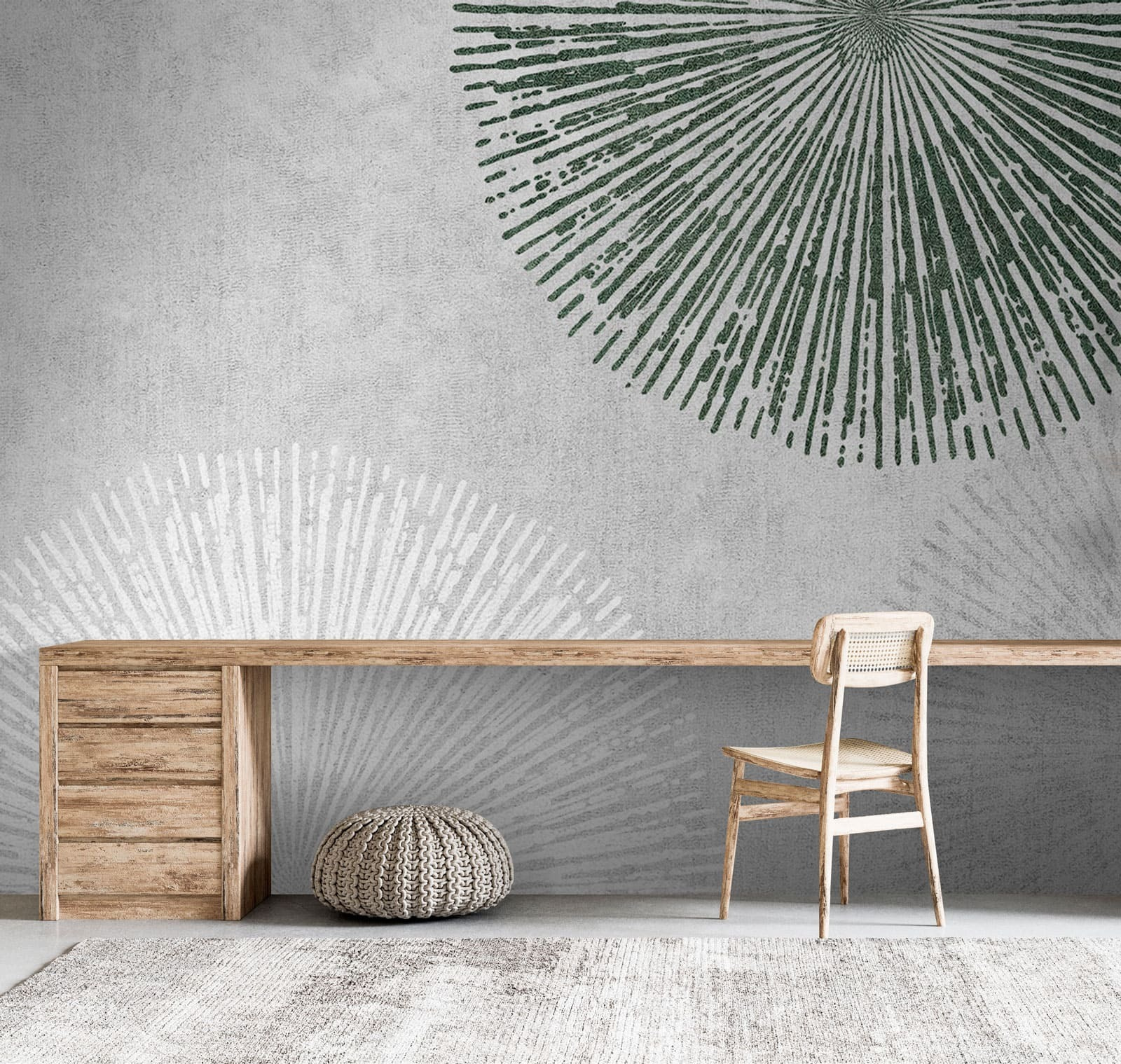 Premeňte svoj priestor pomocou tejto podmanivej nástennej maľby s hravými radiálnymi vzormi na jedinečnom pozadí. Predstavte si to: obývacia izba zrazu nevyzerá ako starý mládenecký byt vášho bratranca, ale skôr ako umelecká kaviareň v meste. Jemná zelená a biela vytvárajú pokojnú atmosféru, vďaka ktorej si po dlhom dni ľahko oddýchnete. Hostia budú zvedaví a zvedaví. Je to ako flirtovanie s geometriou – odvážne, zábavné, ale zároveň ľahko štýlové. Možno sa pristihnete pri tom, ako sa pri pohľade naň zasnívate a každý malý detail podnieti vašu predstavivosť. Ideálny pre tých, ktorí chcú elegantný štýl bez zbytočného rozruchu.