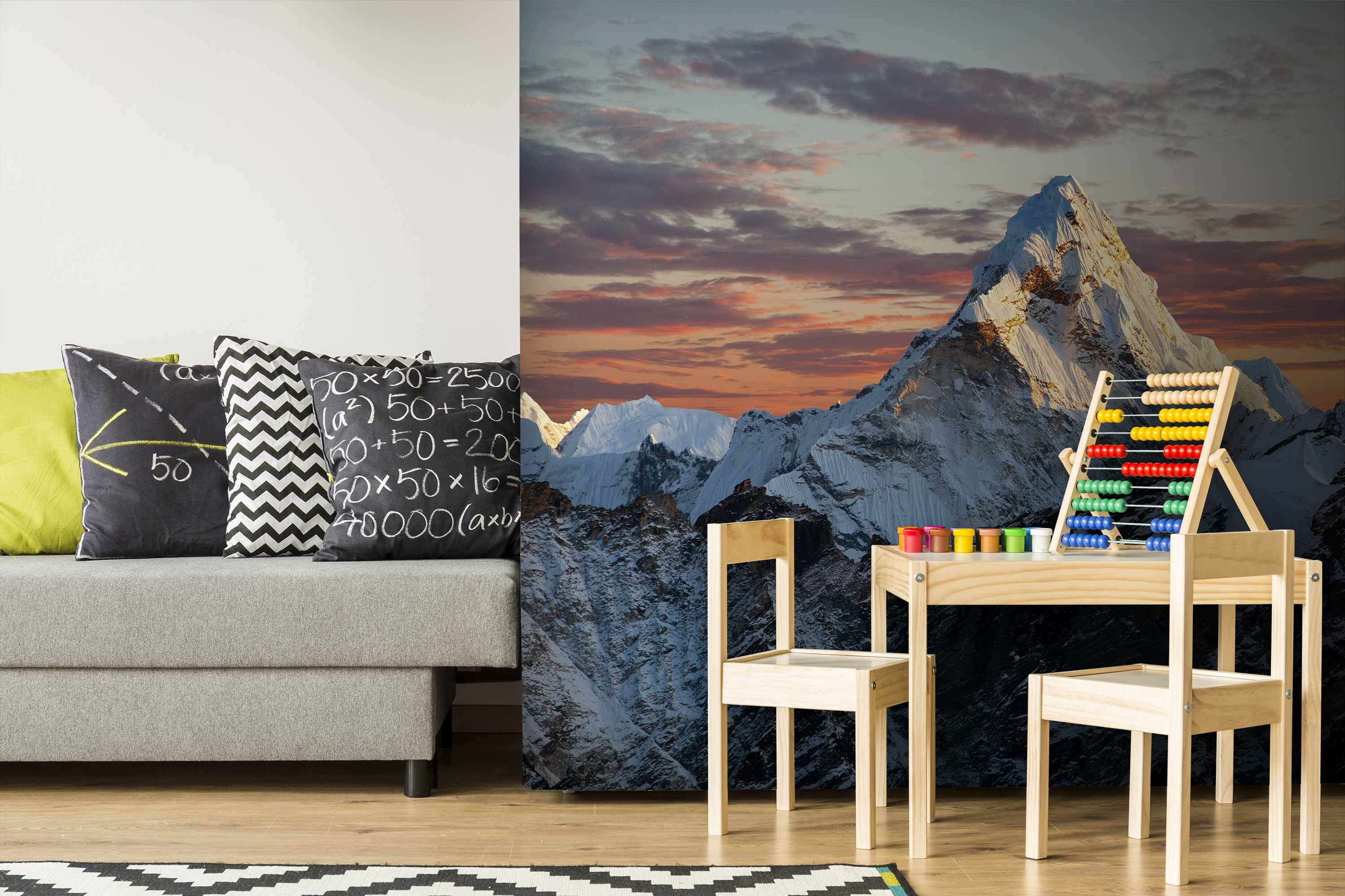 Premeňte svoj priestor na útulné horské útočisko s touto ohromujúcou nástennou maľbou. Predstavte si, že sa prebudíte s pokojným výhľadom na zasnežené vrcholky hôr, ktoré sa kúpu v jemnom svite východu slnka – to je skutočná ranná energia! Táto nástenná maľba nielen vyplňuje miestnosť, ale zároveň pozýva k dobrodružstvu a pokoju. Priatelia sa budú čudovať, či ste tajne zdolali Himaláje – nie, je to len šikovná dekorácia! Chladné farby upokojujú dušu, zatiaľ čo majestátne hory vyvolávajú sny o divokých dobrodružstvách. Kto by nechcel každodennú pripomienku, aby si užil prírodu, aj z pohodlia domova? Ideálne pre každého, kto túži po kúsku prírody zmiešanom s trochou zázraku.