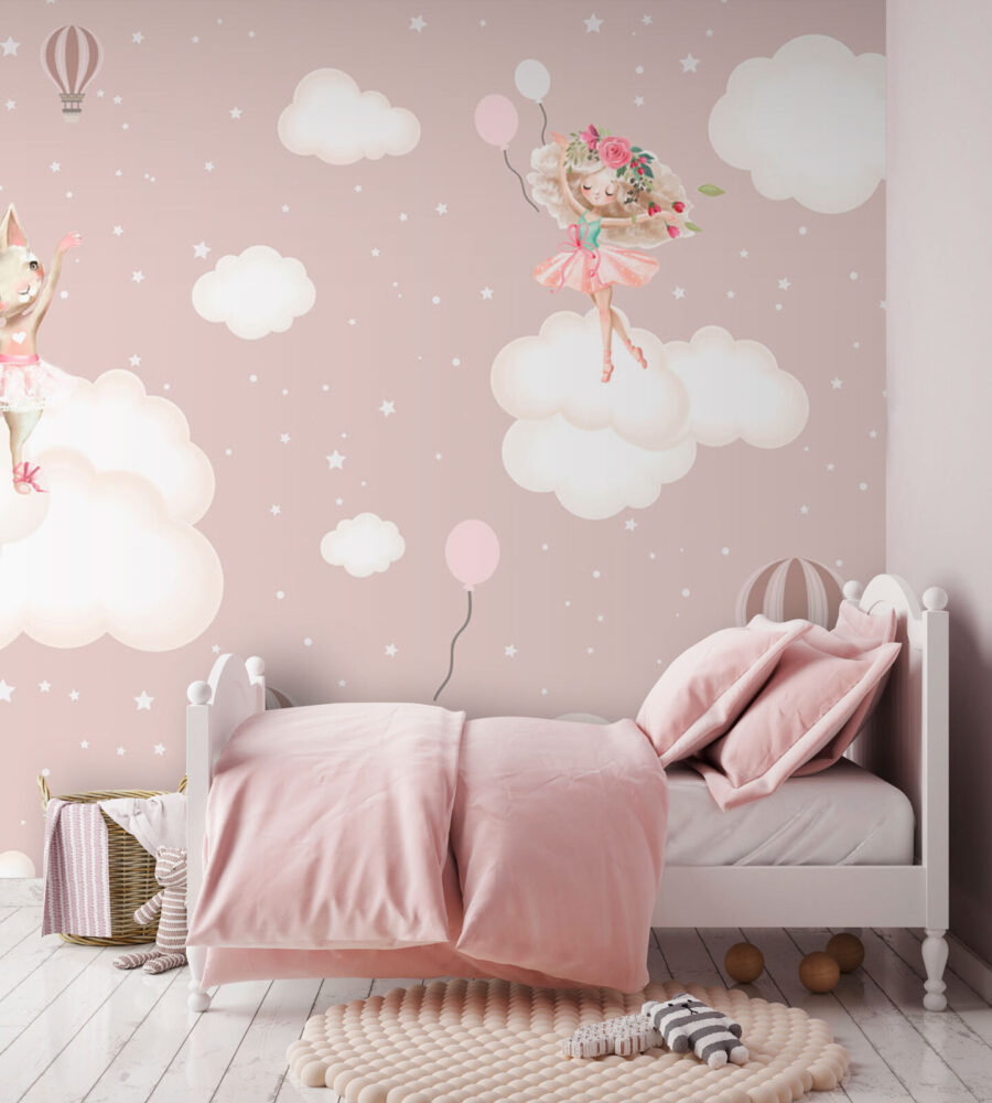 “Nástenná maľba Baletné zvieratká tancujúce na oblakoch” je nádherným doplnkom do každej detskej izby. Predstavte si tie rozmarné chvíle, v ktorých sa balet stretáva so snami – máte tu zajačikov v tutu, mačiatka vyrovnané v dokonalých piruetách a zasnené balóny vznášajúce sa okolo. Vďaka jemným pastelovým obláčikom a pôvabným stvoreniam máte pocit, akoby na vašej stene ožila rozprávková kniha. Ideálne sa hodí do izby vášho malého tanečníka, ktorému dodá kvapku kúzla a nádych elegancie.