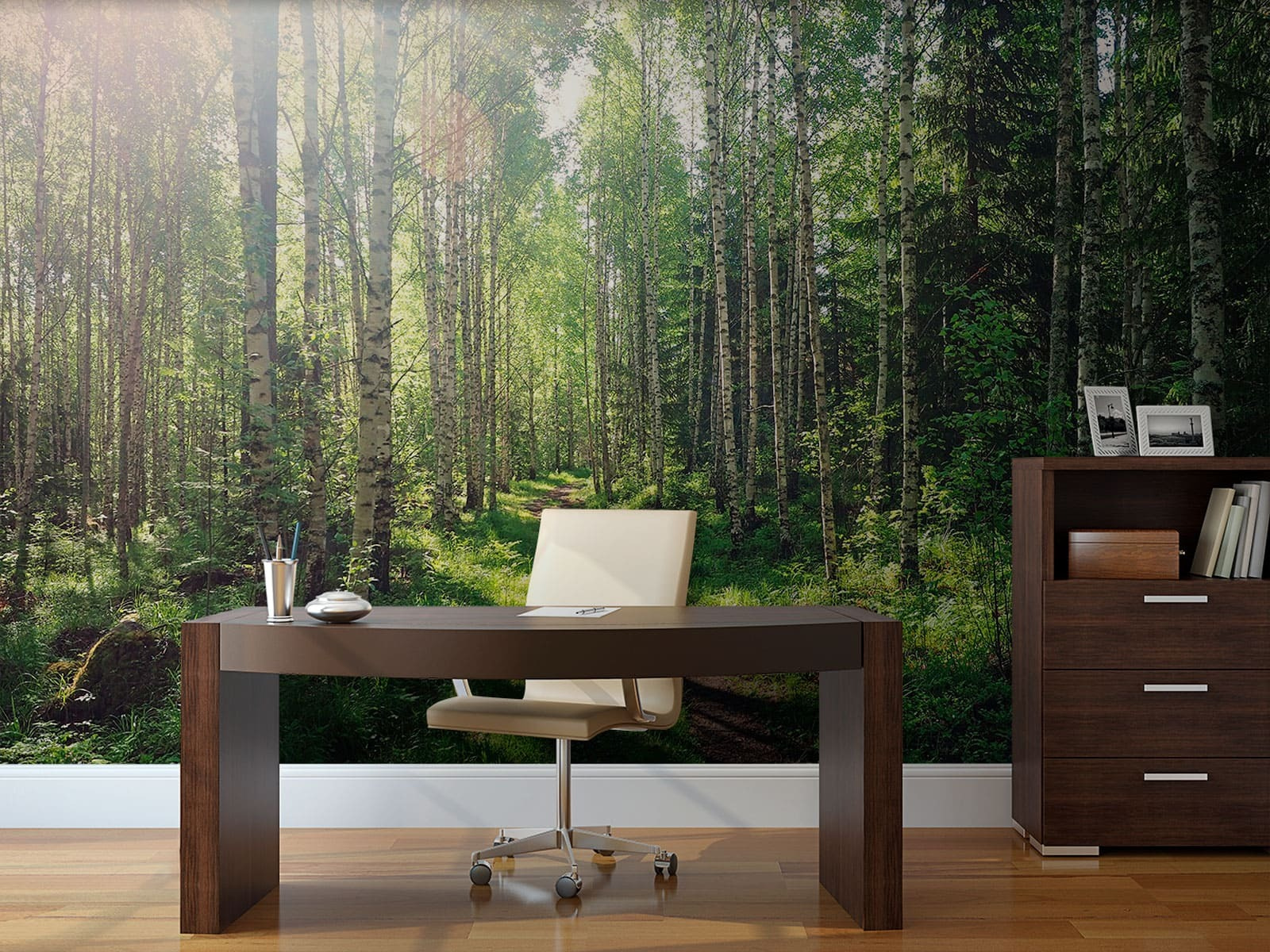 Vneste do svojho domova pokojné kúzlo prírody pomocou nástennej maľby “Prašná cesta lesom”. Predstavte si, že pri každom vstupe do miestnosti vstúpite do pokojného lesa – jemné svetlo prenikajúce cez žiarivé listy, jemné vŕzganie zeme pod nohami. Táto nástenná maľba vás pozýva na útek od zhonu, vďaka čomu sa útulný čitateľský kútik bude cítiť ako skryté útočisko na chate. Priatelia sa k nemu budú túlať a závidieť vám, a vy sa možno dokonca pristihnete pri tom, ako snívate o víkendových výletoch. Je to nádherný doplnok pre akýkoľvek priestor, ktorý vzbudzuje radosť a lásku k prírode.