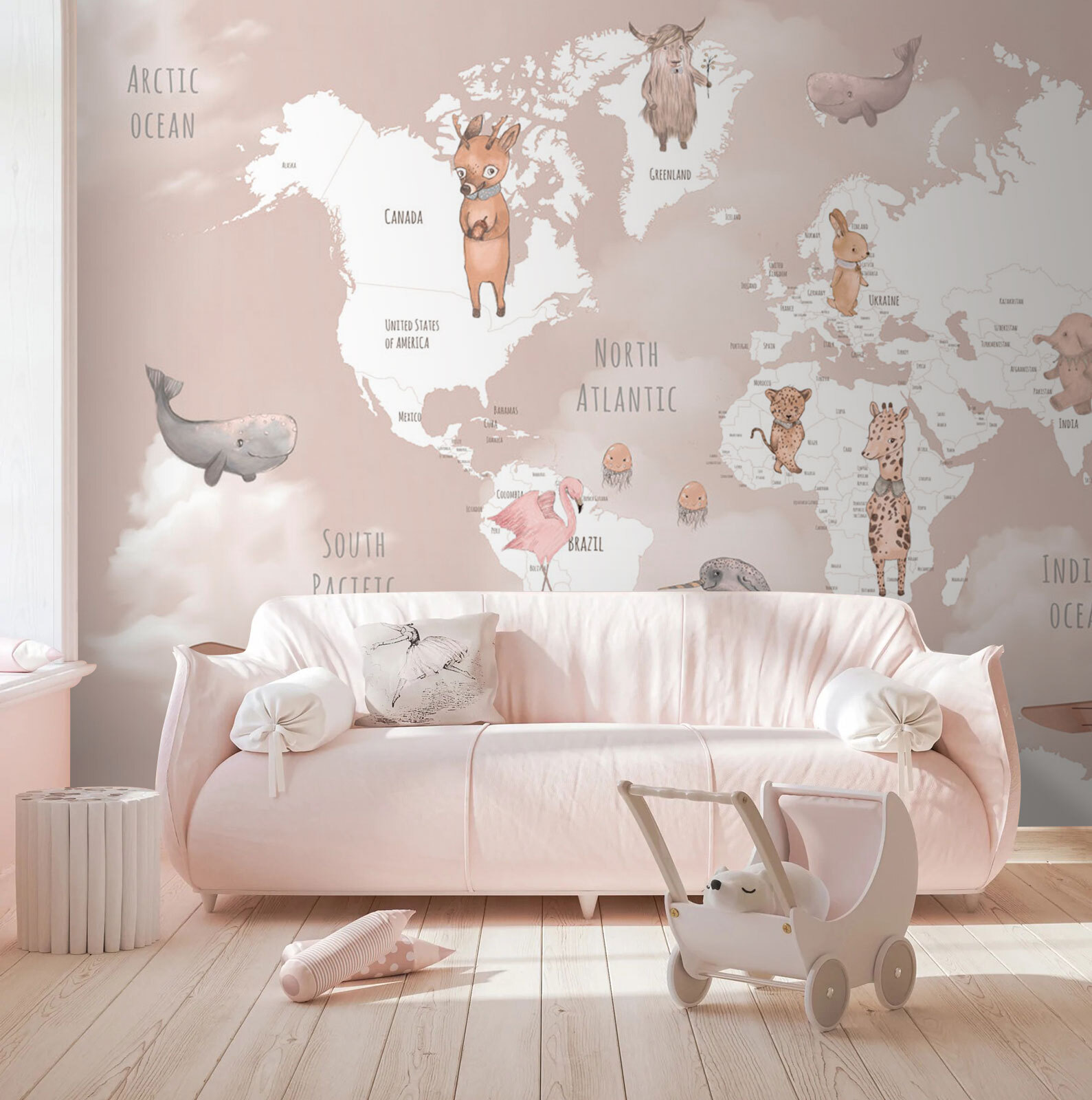 Je to super zábava do detských izieb, ale úprimne, komu by sa nepáčila v útulnom čitateľskom kútiku? Jemné tóny a veselé postavičky vyčarujú úsmev na tvári každému. A možno dokonca vzbudí globálnu zvedavosť. “Odkiaľ je ten roztomilý narval, mami?” budete počuť, a práve tak sa začne lekcia geografie. Takže ste pripravení rozprúdiť na svojich stenách trochu radosti a rozmarnosti?