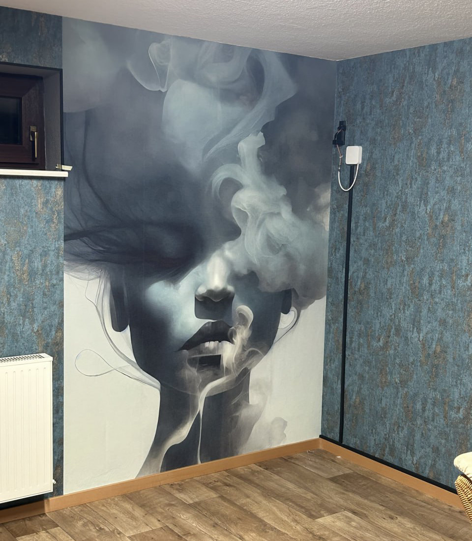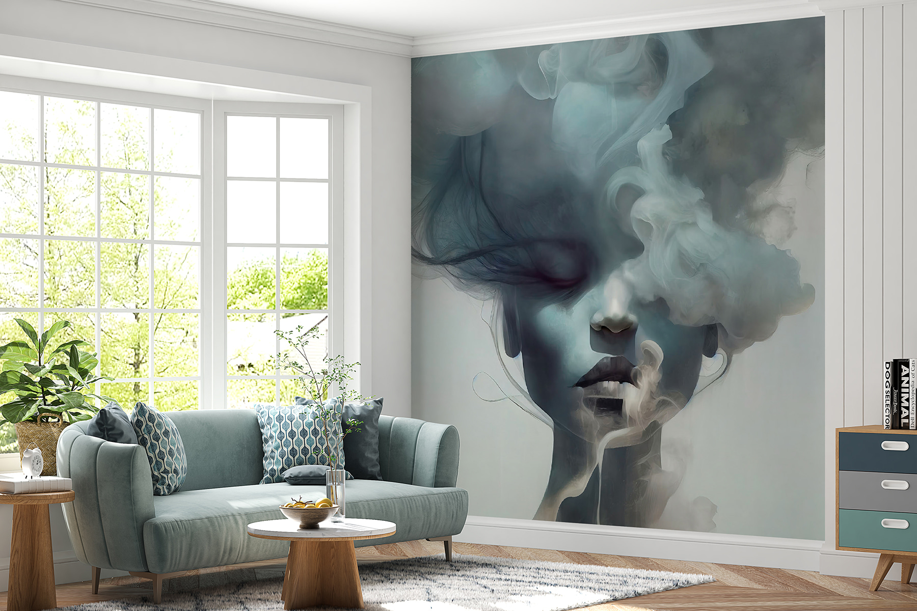 Premeňte svoj priestor pomocou tejto úžasnej nástennej maľby s tvárou ženy jemne zahalenej do éterického dymu. Predstavte si, že vojdete do miestnosti a tento kúsok vás vtiahne do seba – jeho tajomná atmosféra dodáva atmosféru intríg a pokoja. Jemné prelínanie odtieňov vytvára upokojujúcu prítomnosť, takže je ideálny pre útulný kútik na čítanie alebo osviežujúci únik od každodenného zhonu.