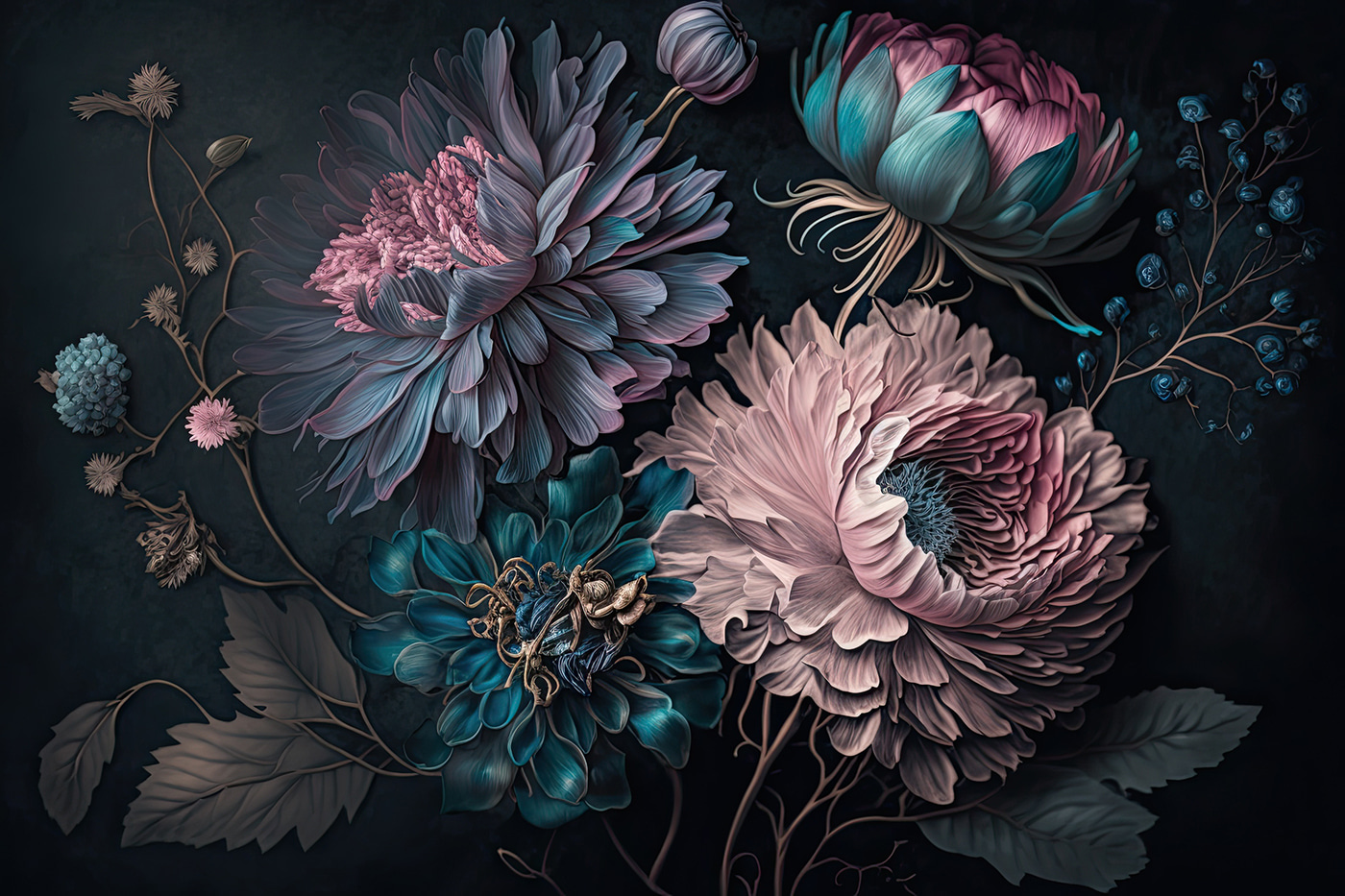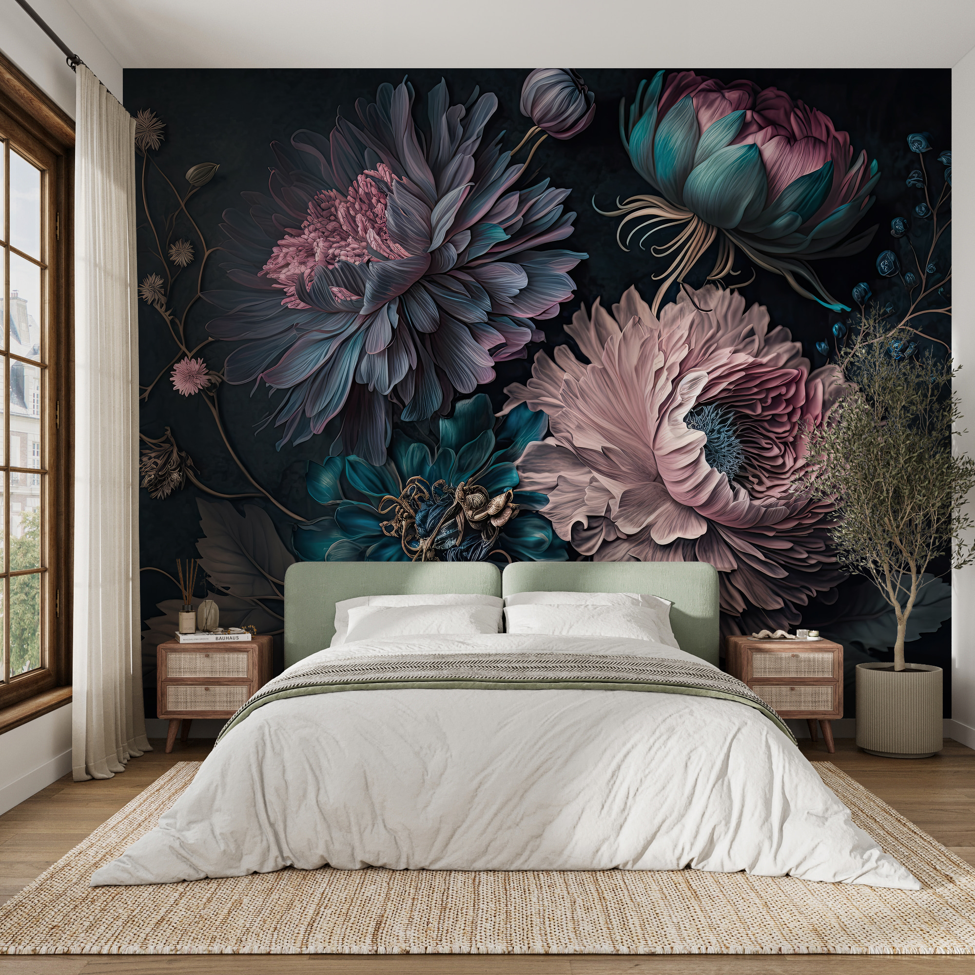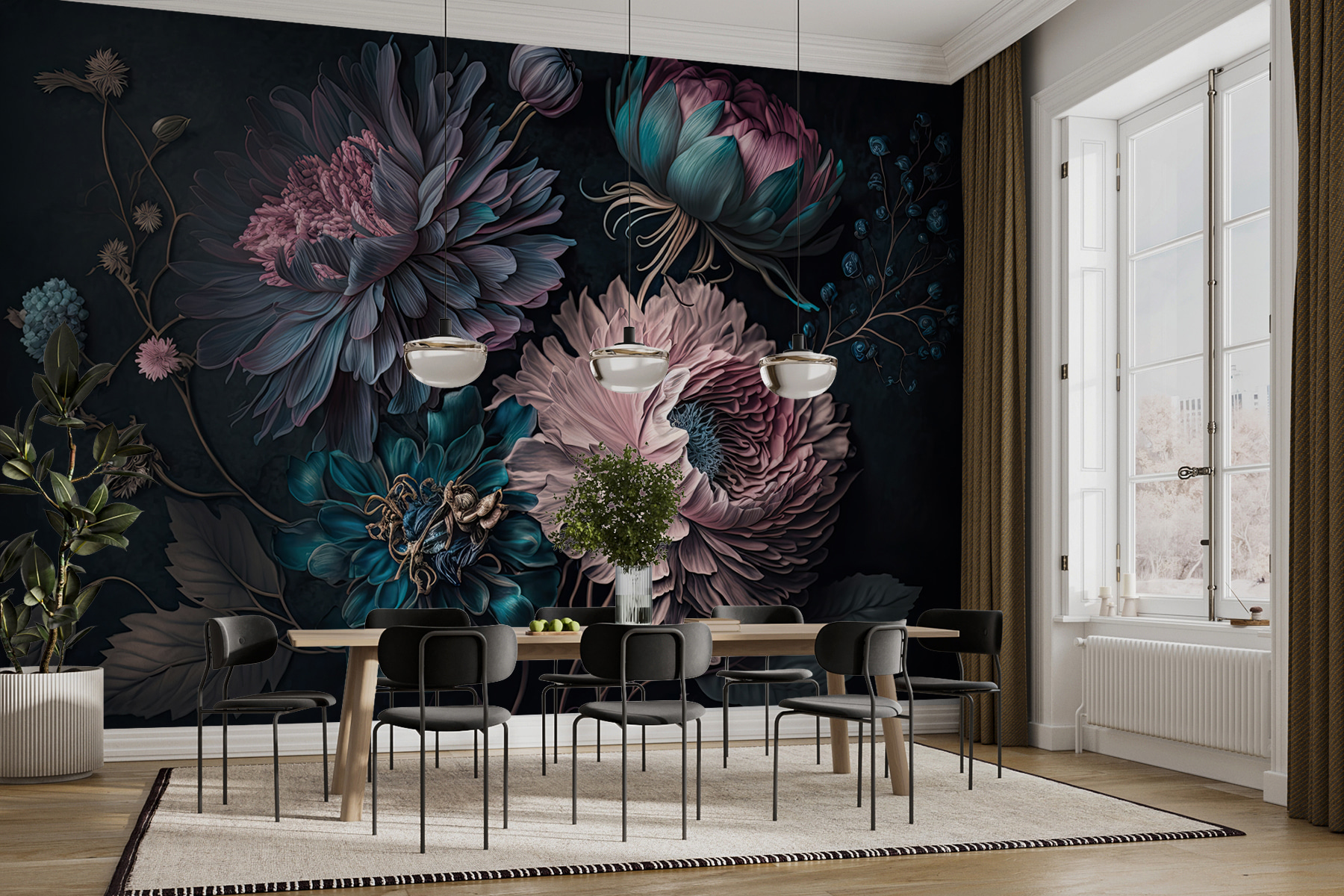 Premeňte akýkoľvek priestor pomocou tejto ohromujúcej nástennej maľby so živými kvetmi v magickom usporiadaní. Je to ako preniesť záhradu do interiéru bez špinavej pôdy alebo otravných chrobákov. Predstavte si, že sa každý deň prebúdzate s týmito nádhernými kvetmi! Sýte farby vytvárajú útulnú, príjemnú atmosféru, ktorá je ideálna do obývacích izieb alebo útulných zákutí. Predstavte si, že hostíte priateľov – všetci budú priťahovaní k tejto stene a obdivovať tie zložité okvetné lístky. Je to okamžitý začiatok konverzácie, verte mi. Nie je tu potrebný zelený palec, stačí láska ku kráse a štipka kreativity. Nástenné umenie ešte nikdy nebolo také živé!